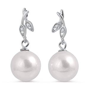 Pearl Dangle Vine Earrings Cubic Zirconia Accent in Sterling Silver