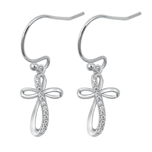 Loop Cross Dangle Earrings Cubic Zirconia Accent in Sterling Silver
