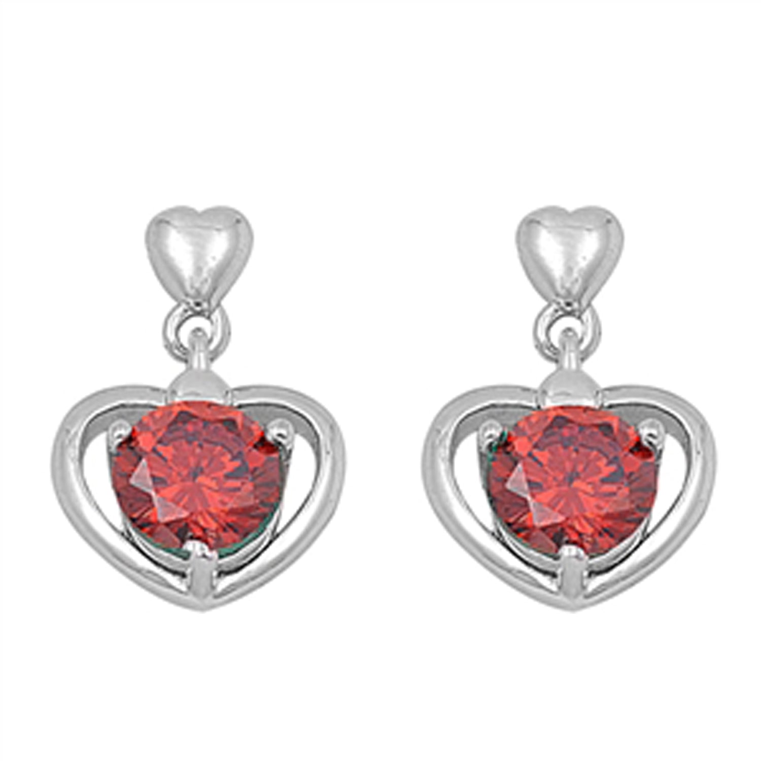Round-cut January Birthstone Cubic Zirconia Heart Dangle Earrings in Sterling Silver