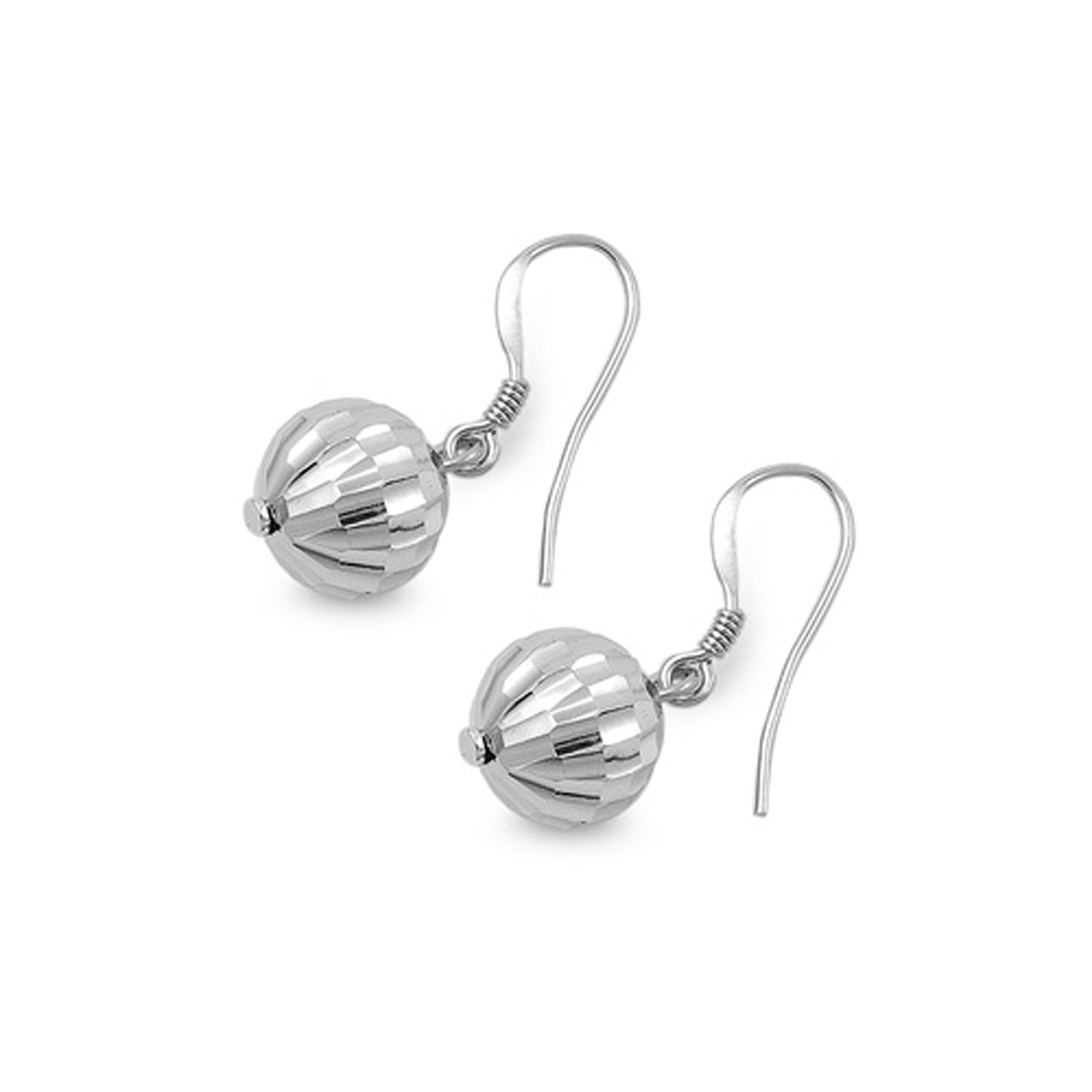 Mirror Texture Bead Dangle Earrings in Sterling Silver