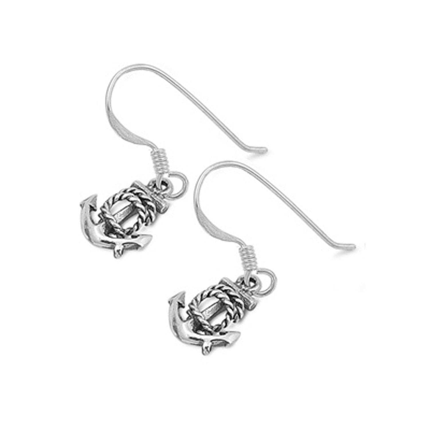 Nautical Anchor Hook Dangle Earrings in Sterling Silver