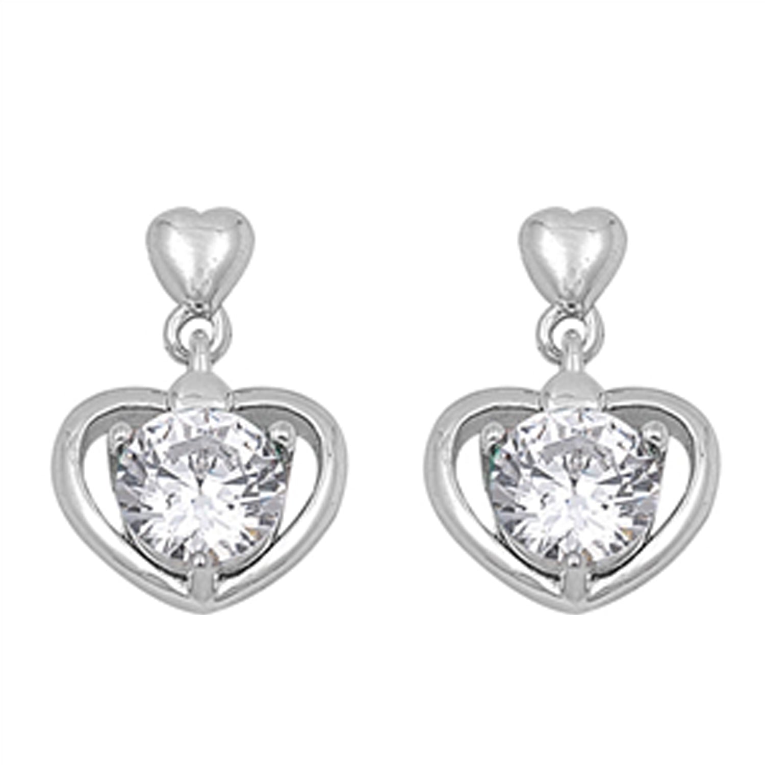 Round-cut Cubic Zirconia Heart Dangle Earrings in Sterling Silver