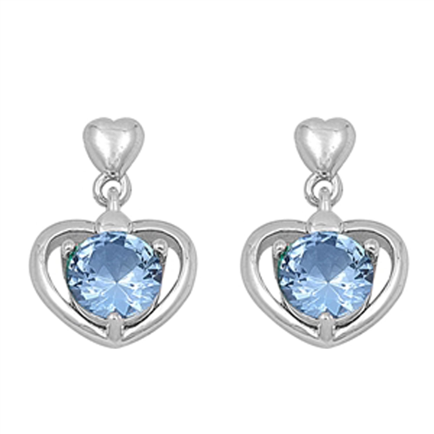 Round-cut March Birthstone Cubic Zirconia Heart Dangle Earrings in Sterling Silver