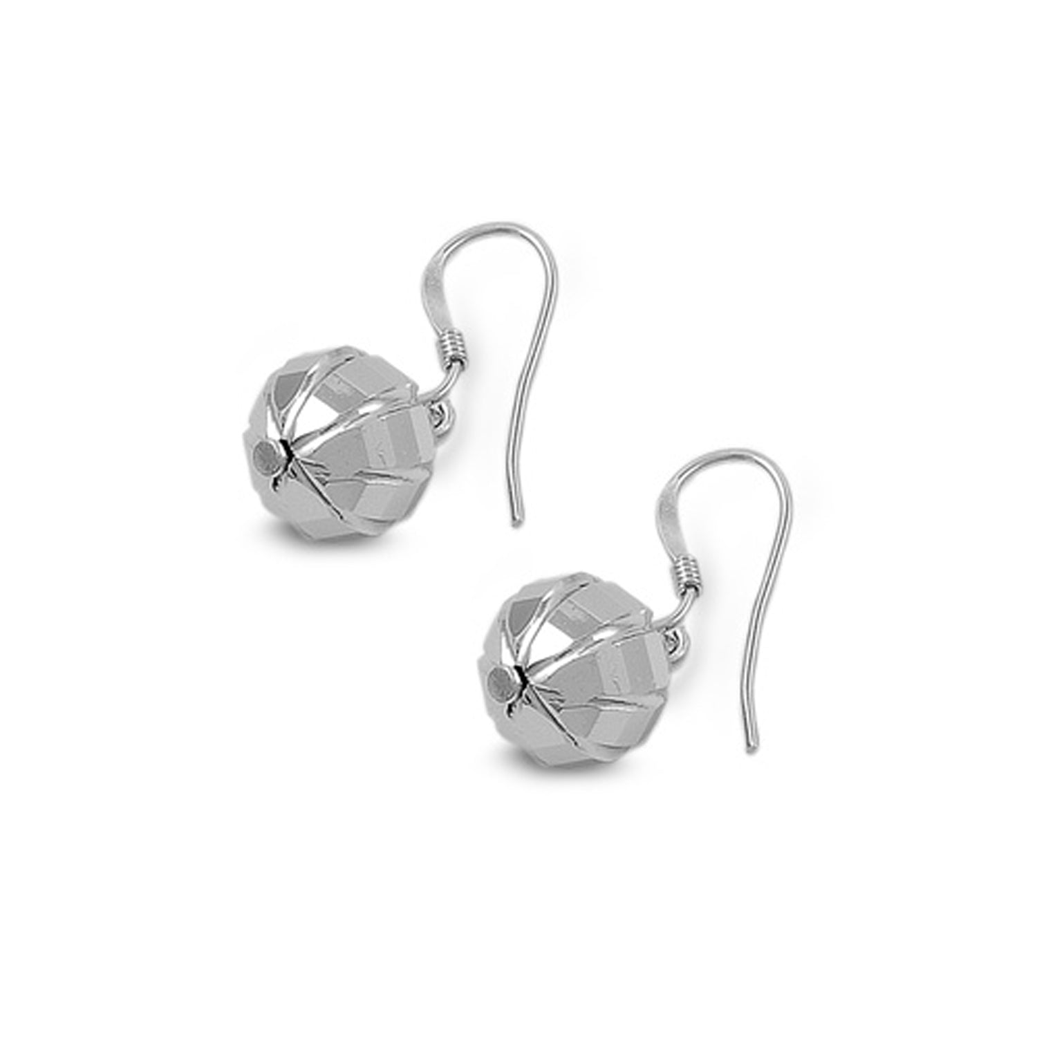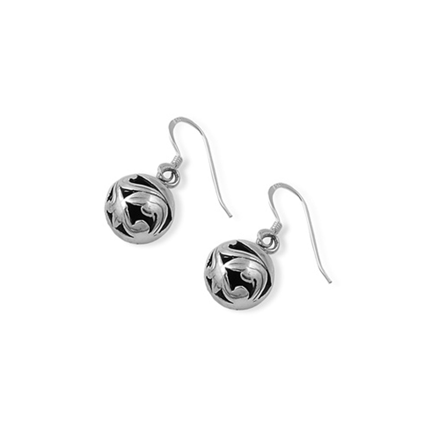 Scroll Design Ball Hook Dangle Earrings in Sterling Silver