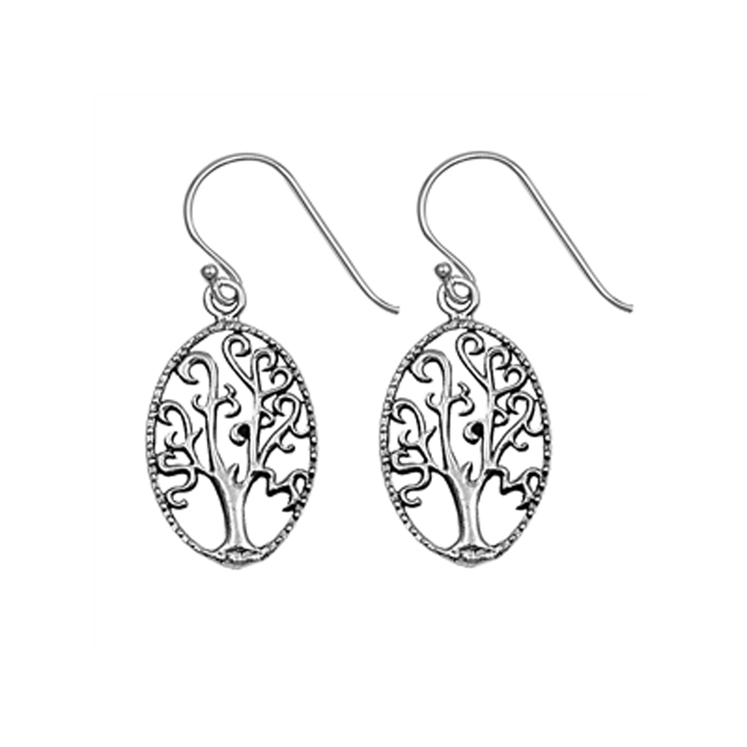 Swirl Tree Oval Dangle Earrings in Sterling Silver