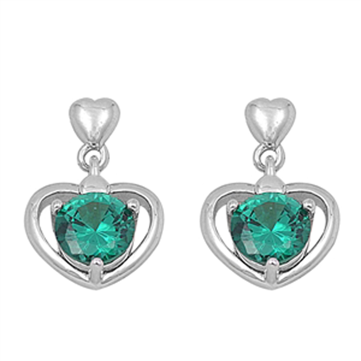 Round-cut May Birthstone Cubic Zirconia Heart Dangle Earrings in Sterling Silver