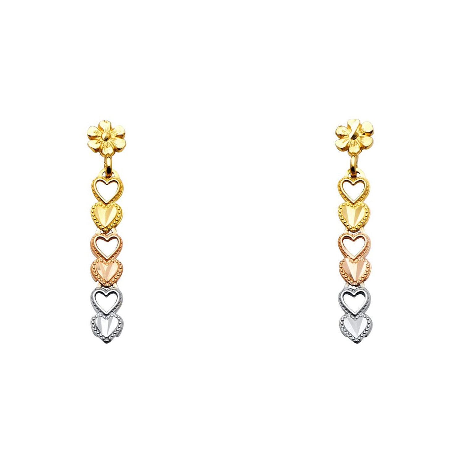 Stacked Hearts Floral Dangle Earrings in 14k Three Tone Gold