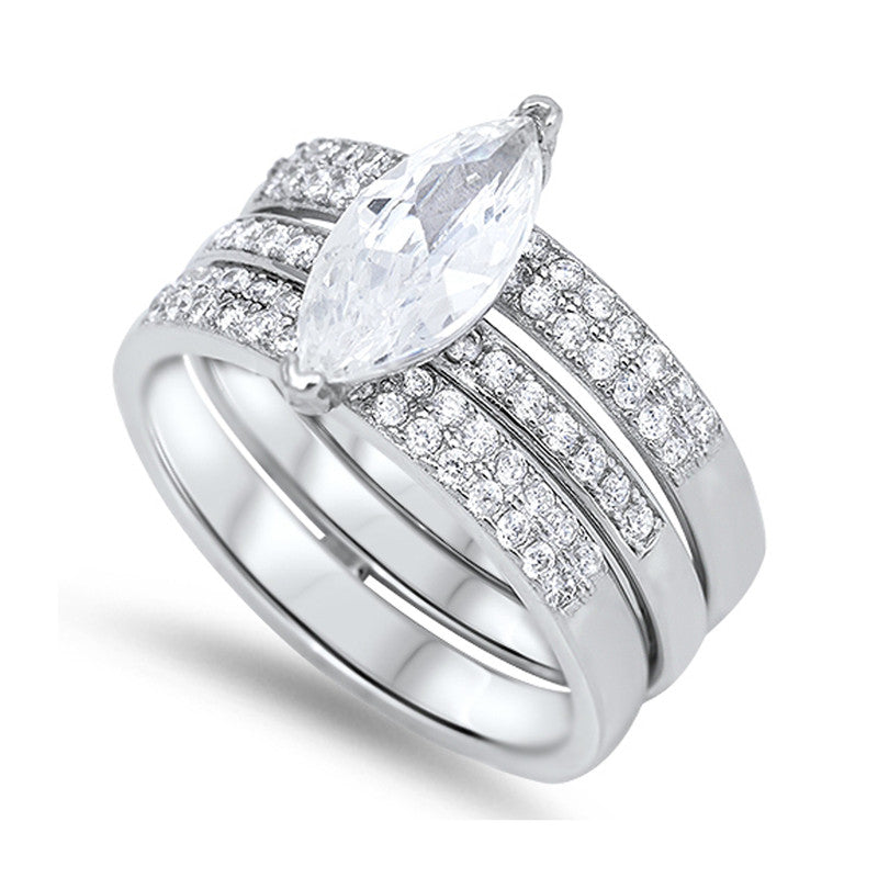 Marquise Cubic Zirconia Bridal Engagement Wedding Ring Set in Sterling Silver
