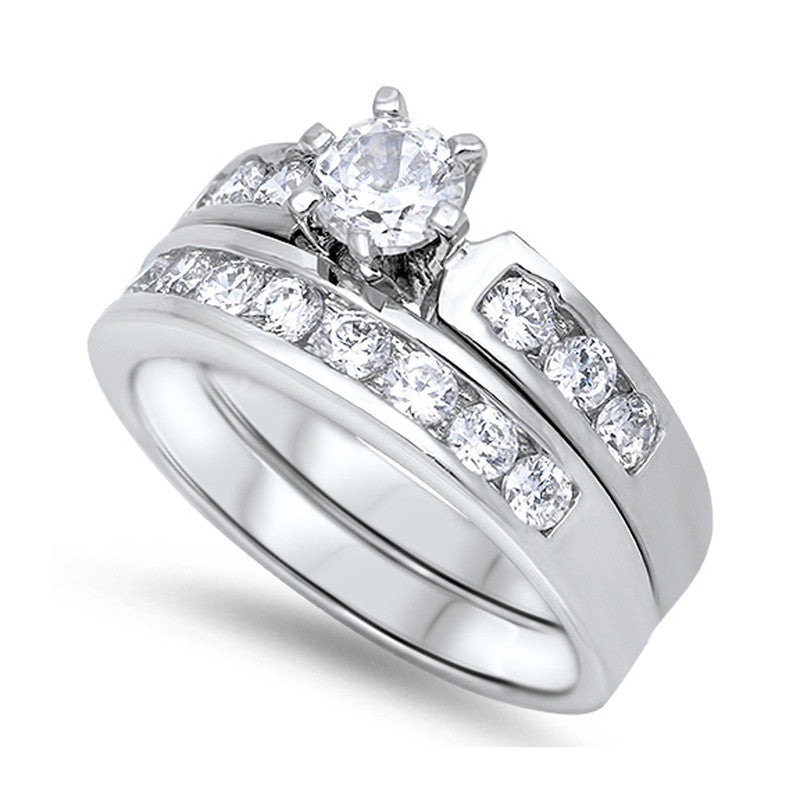 Bridal's Channel Set Round Cubic Zirconia Engagement Wedding Ring Set