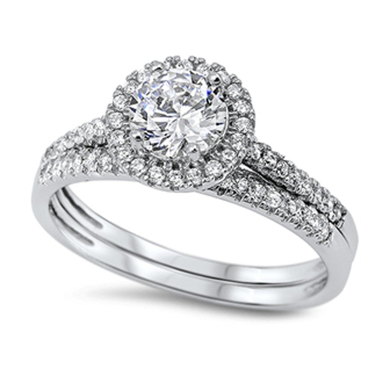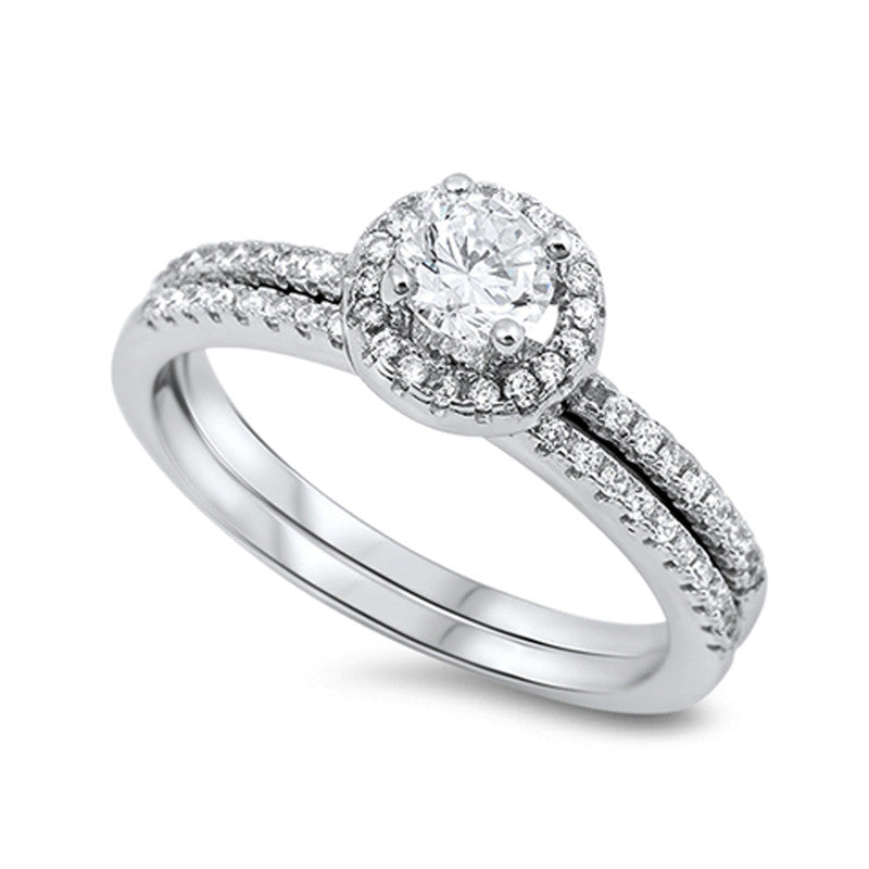 Classic Halo Cubic Zirconia Bridal Wedding Engagement Ring Set
