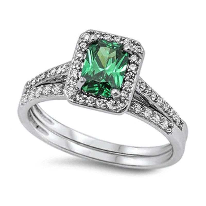 Emerald-cut May Birthstone Cubic Zirconia Engagement Wedding Ring Set