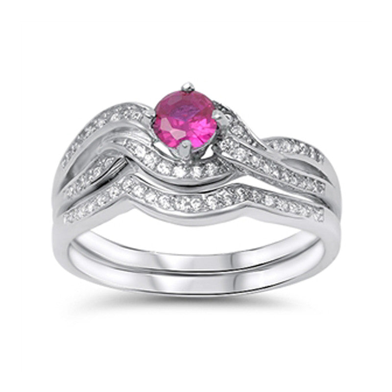 July Birthstone Cubic Zirconia Bridal Engagement Wedding Ring Set