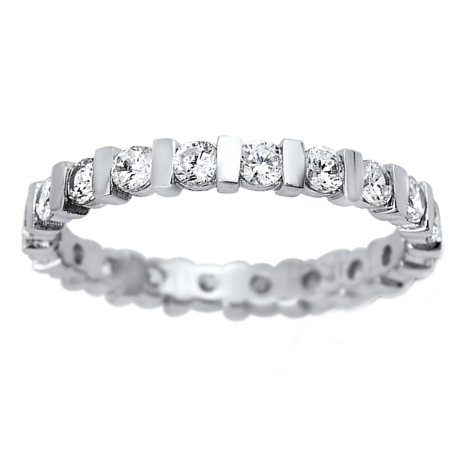 Bar Setting Cubic Zirconia Engagement Ring in Sterling Silver