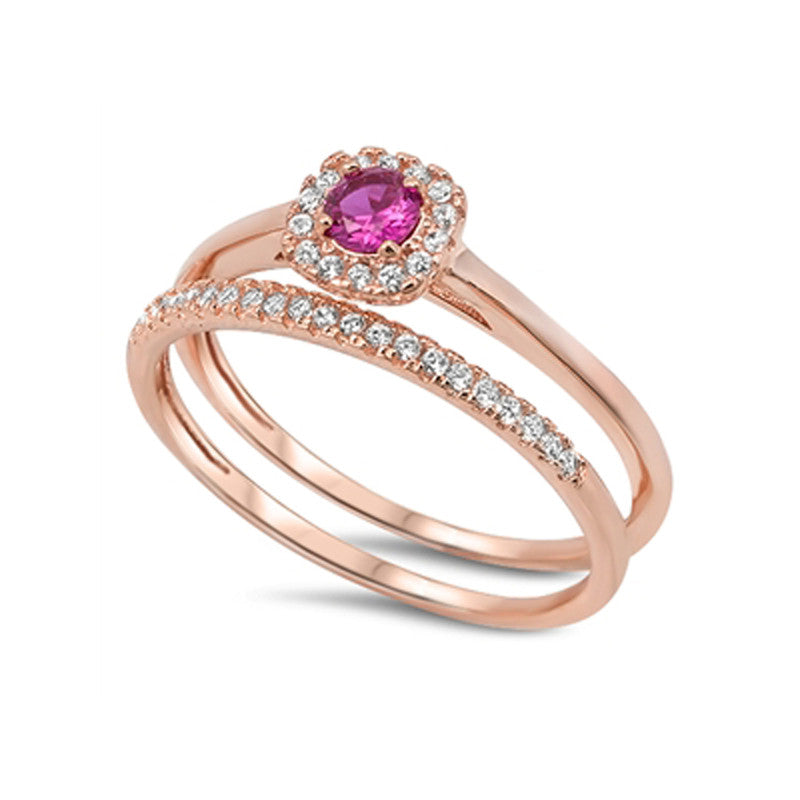 Round Cut July Birthstone Cubic Zirconia Bridal Engagement Ring Set
