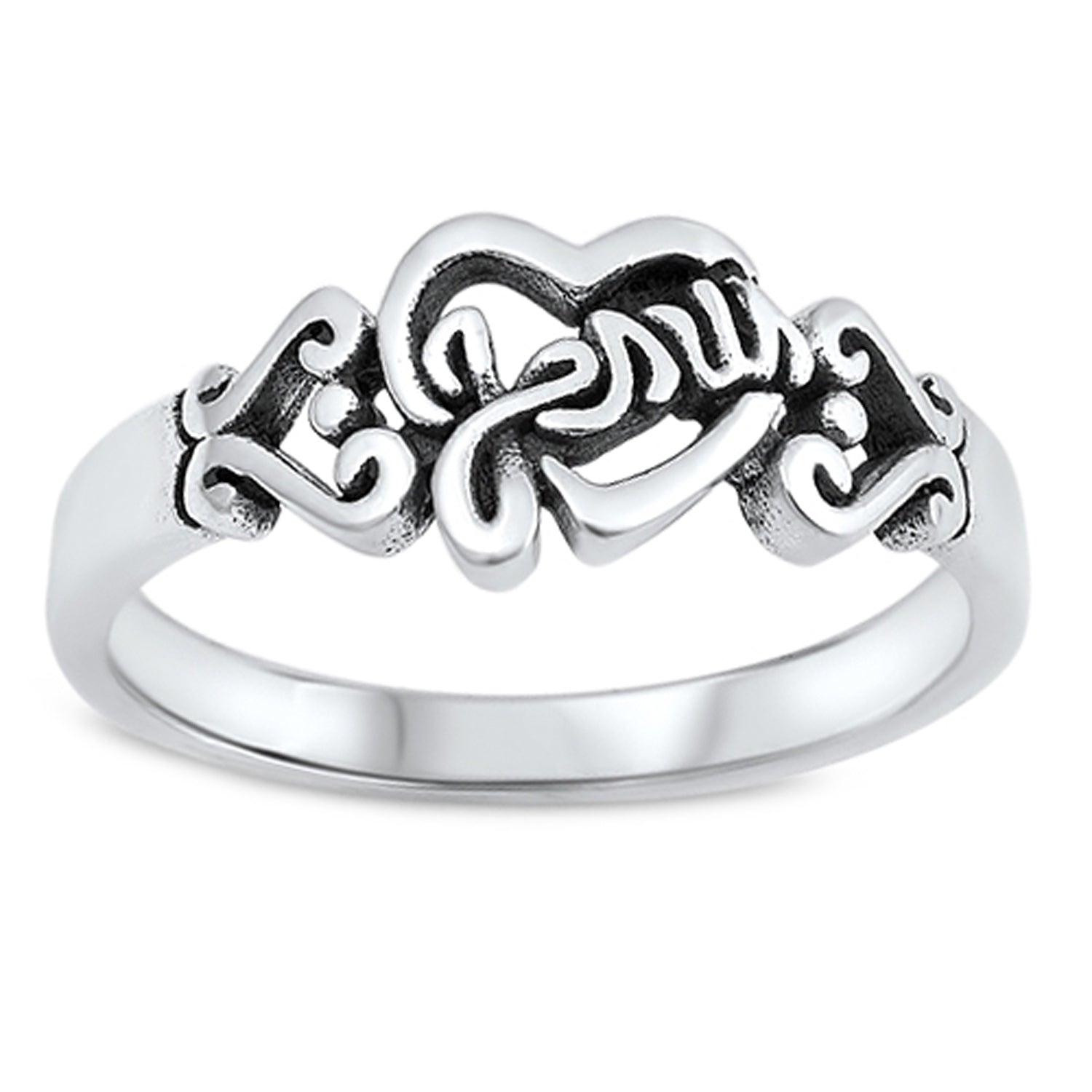 Intricate Scrolls Jesus Ring in Sterling Silver