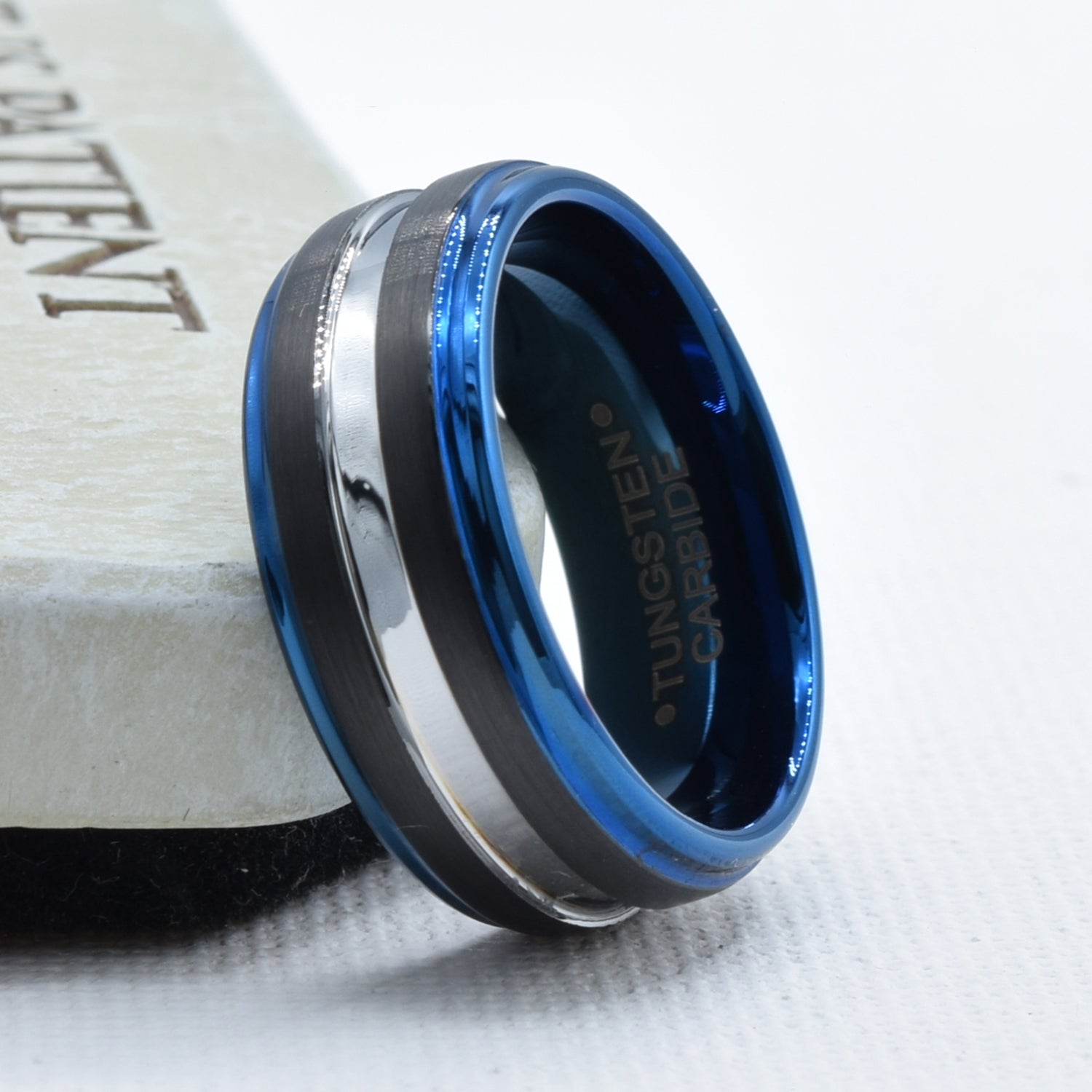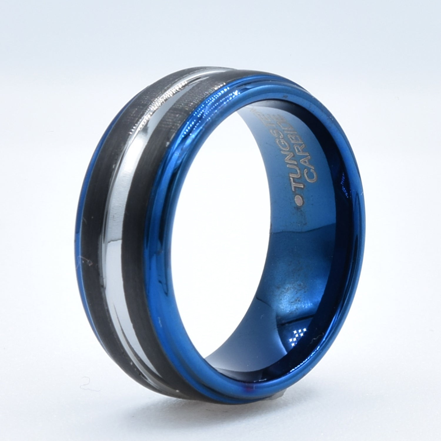 Black & Blue Grooved Center Wedding Band in Tungsten