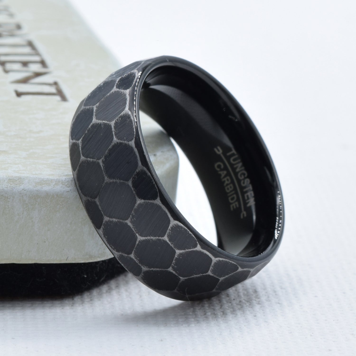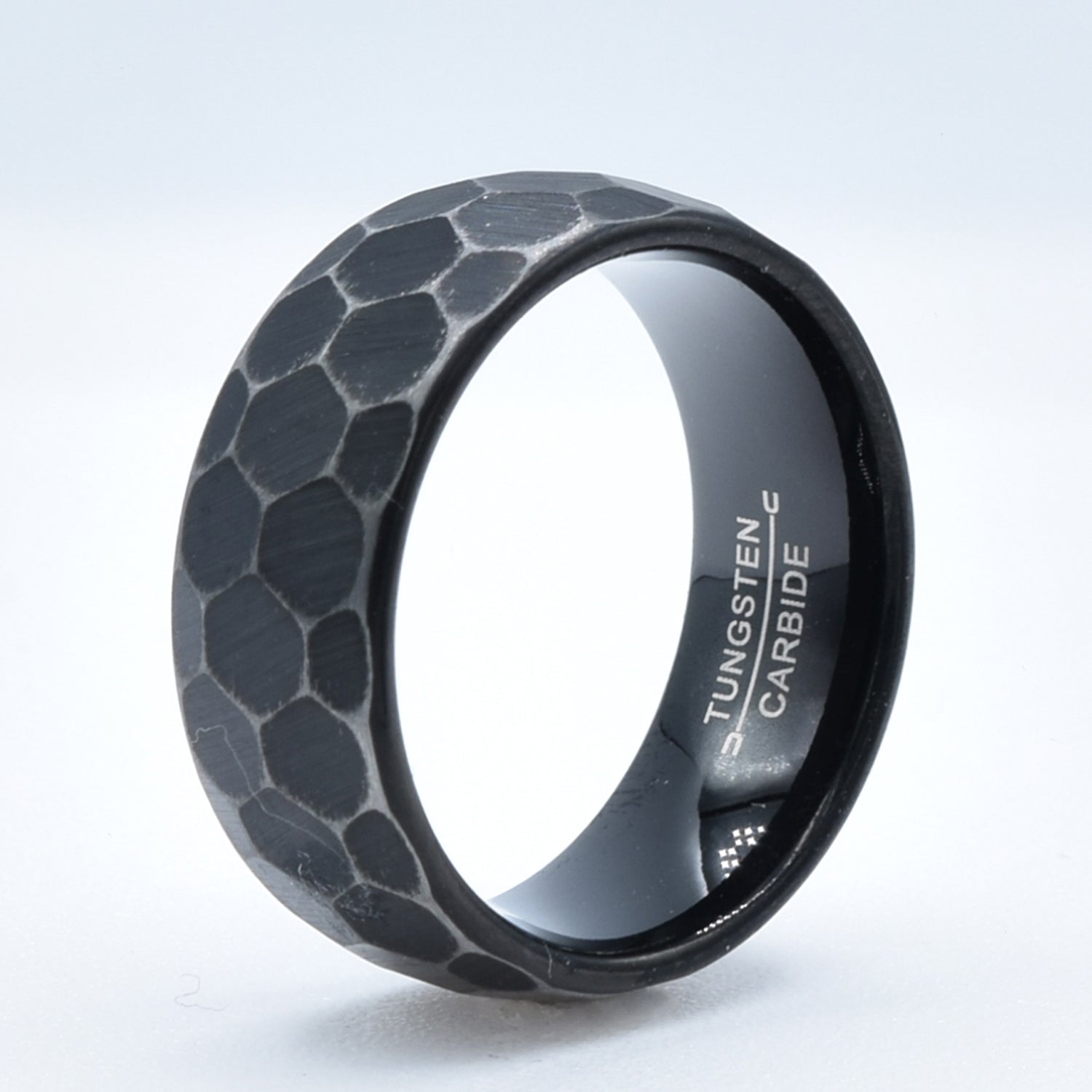 Black Hammered Dome Wedding Band in Tungsten