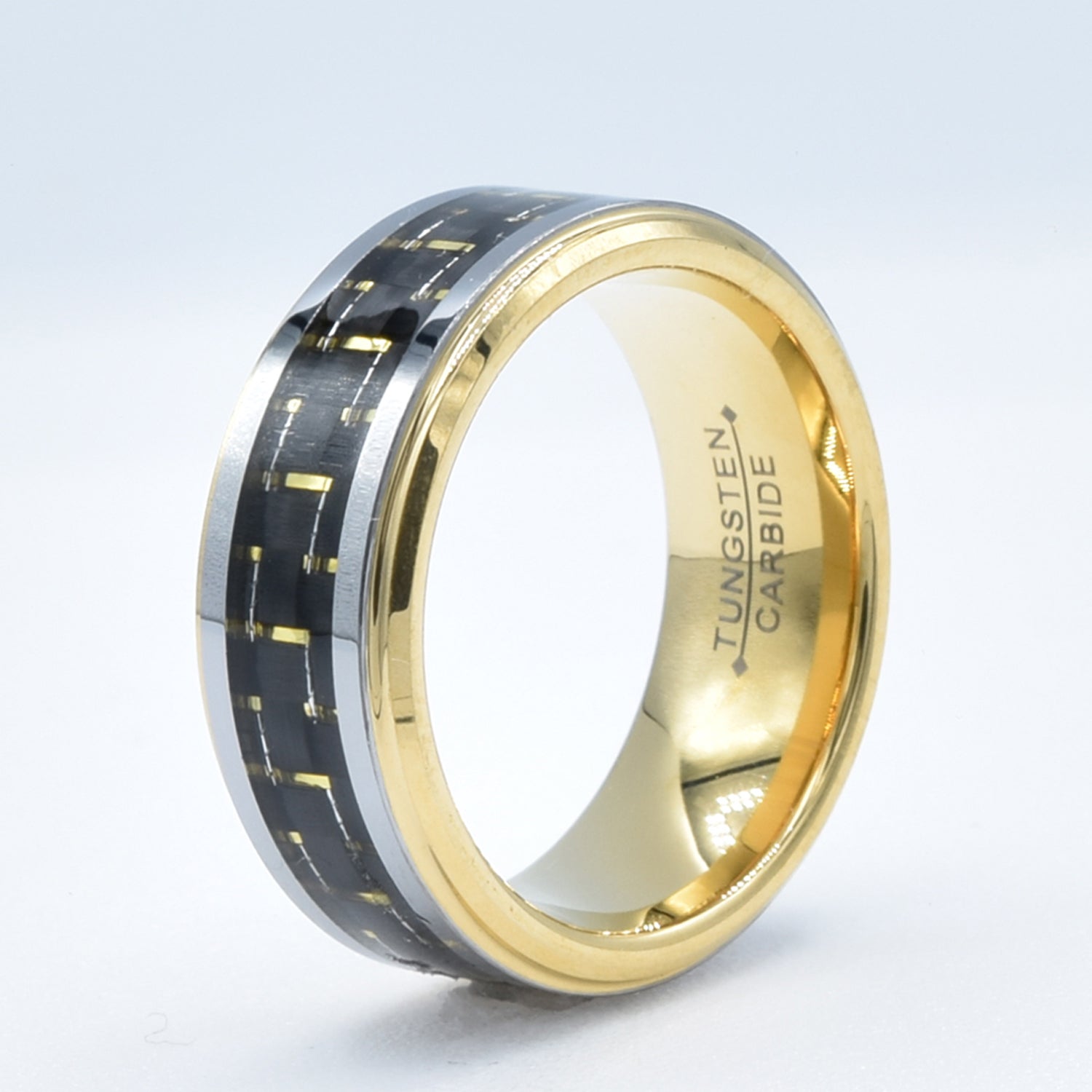 Black Carbon Fiber Inlay Yellow Wedding Band in Tungsten