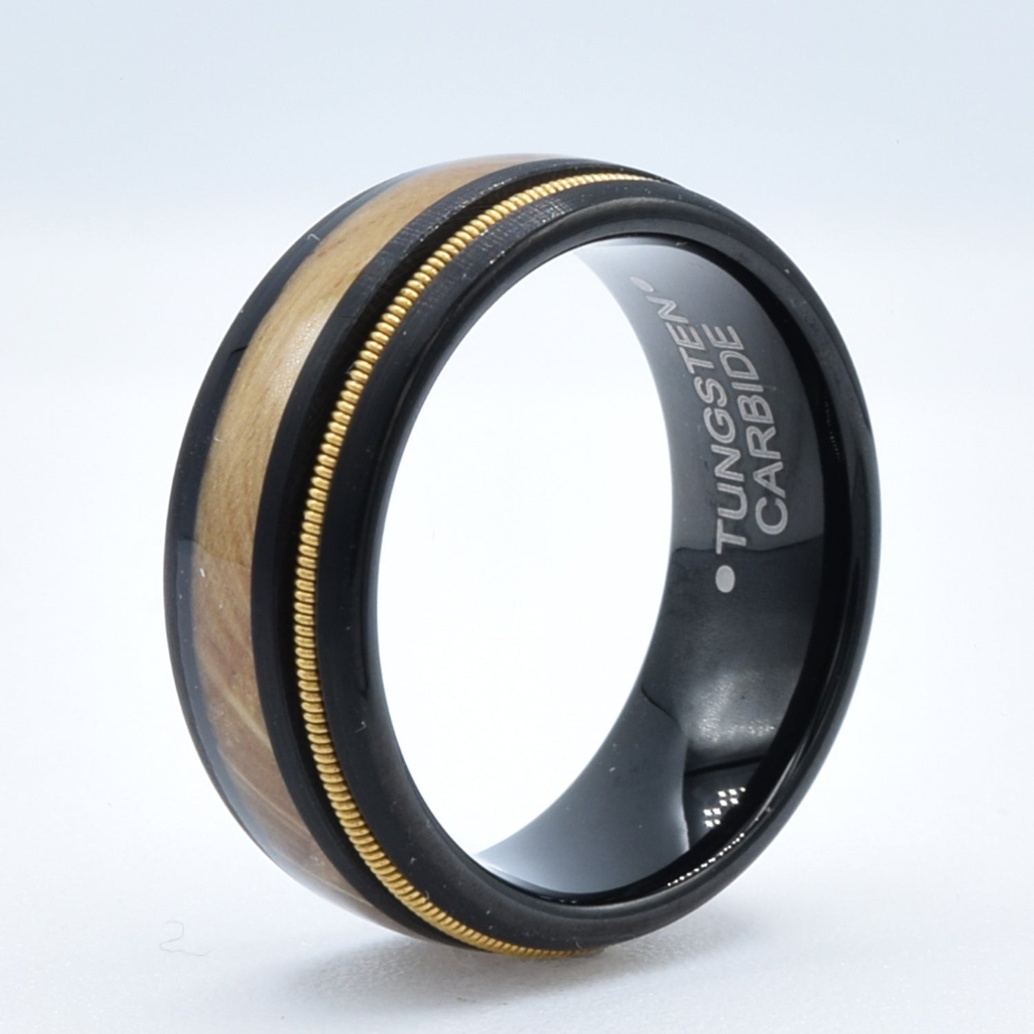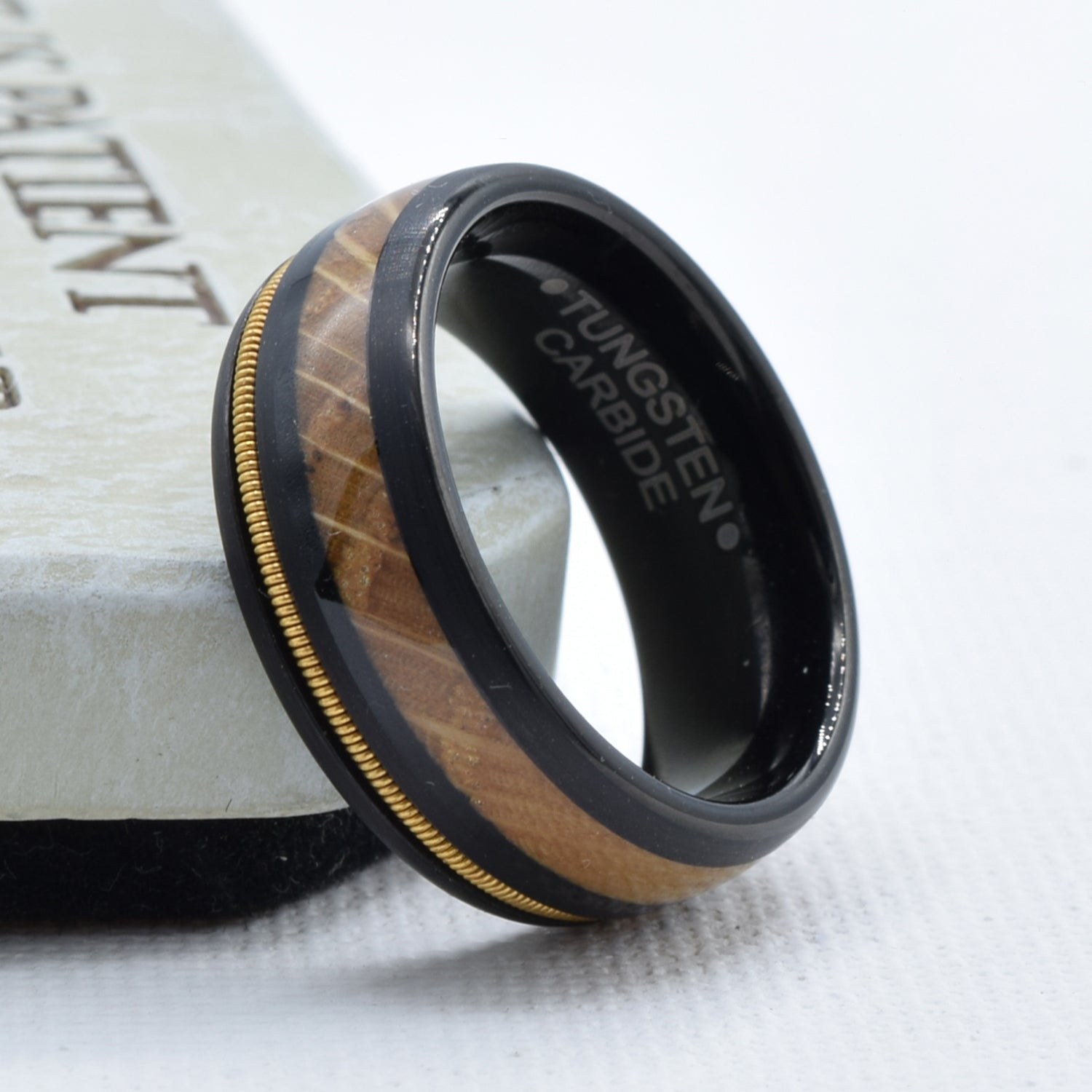 Asymmetric Guitar String Whiskey Barrel Wedding Band in Tungsten