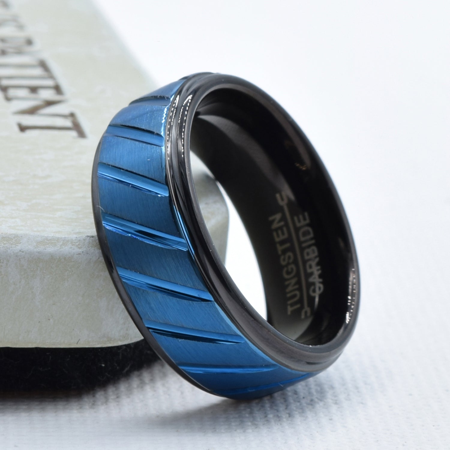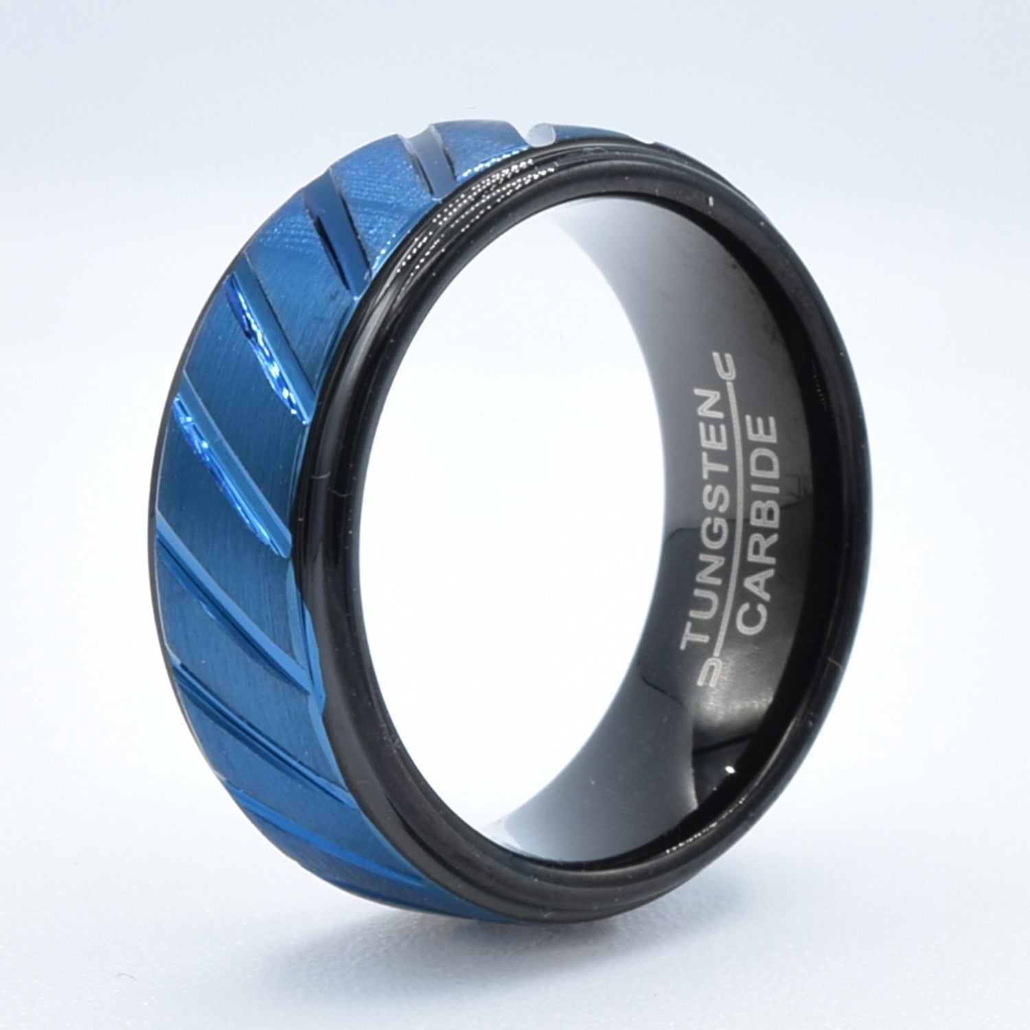 Diagonal Design Black & Blue Wedding Band in Tungsten