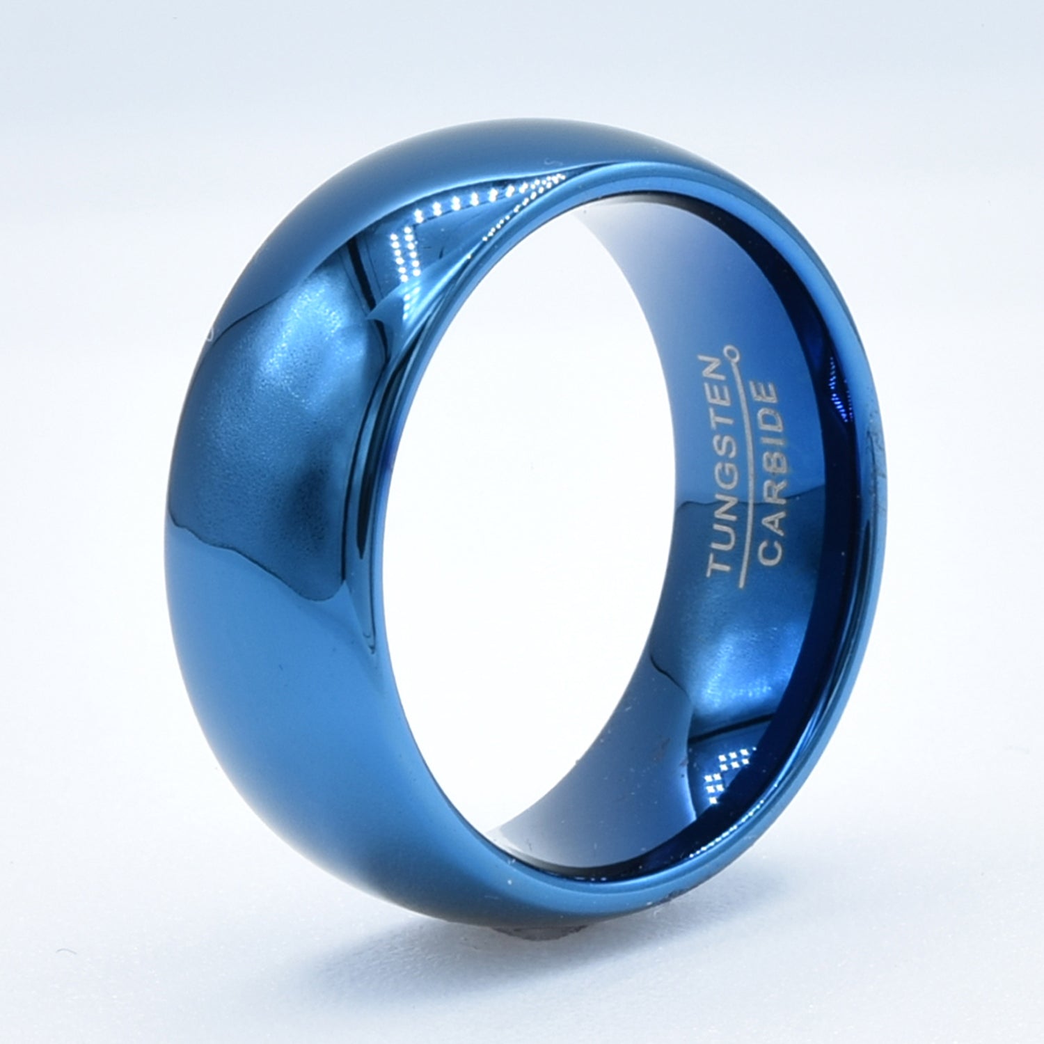 Classic Blue Dome Wedding Band in Tungsten Polish Finish