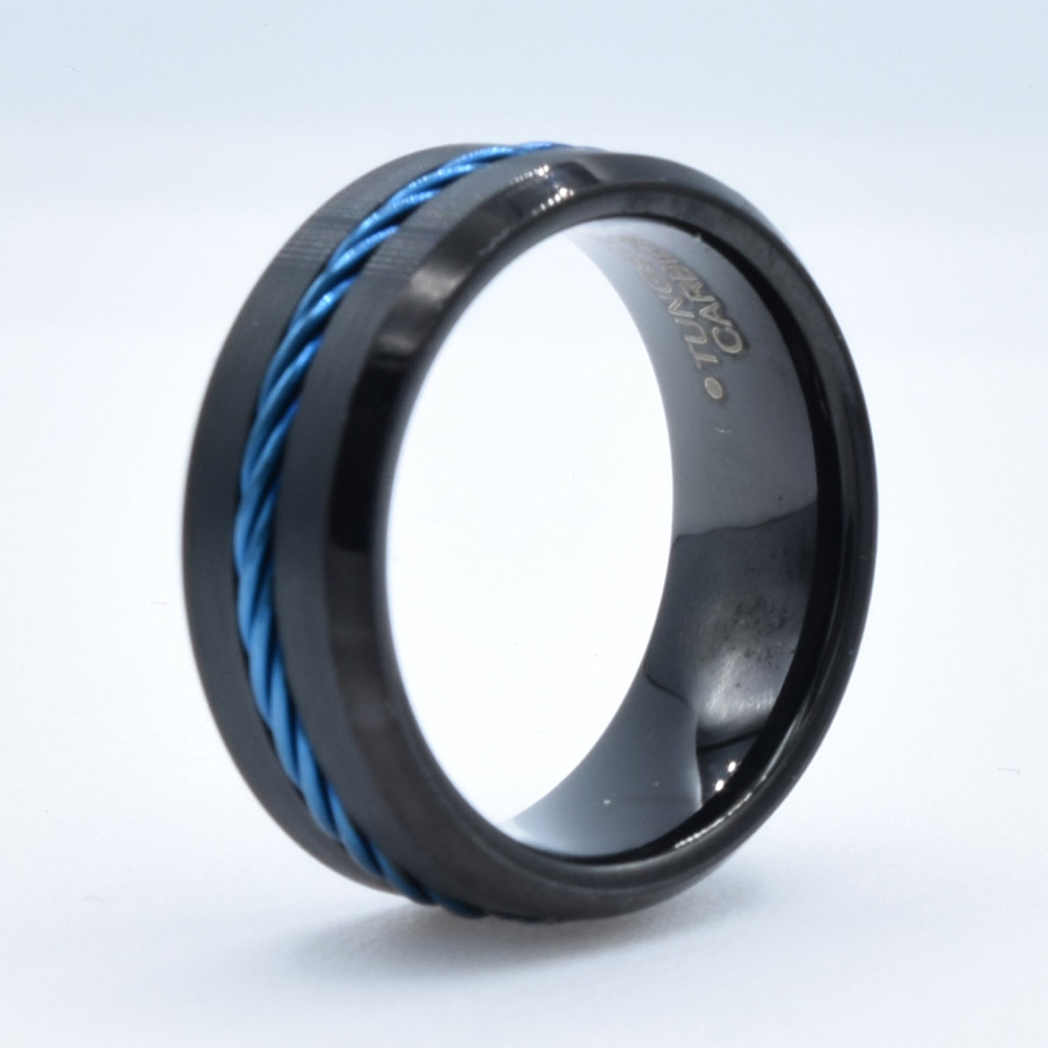 Twisted Blue Rope Center Black Wedding Band in Tungsten