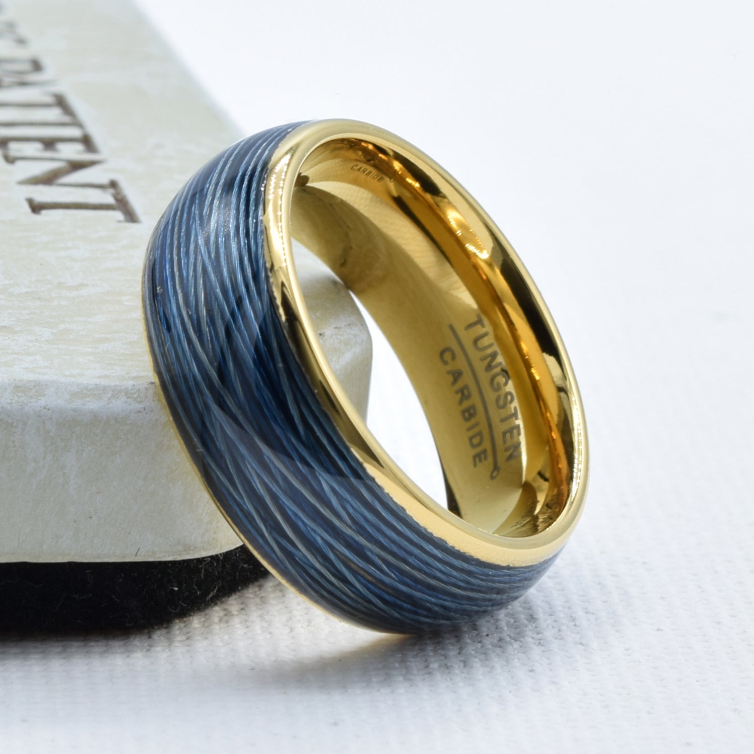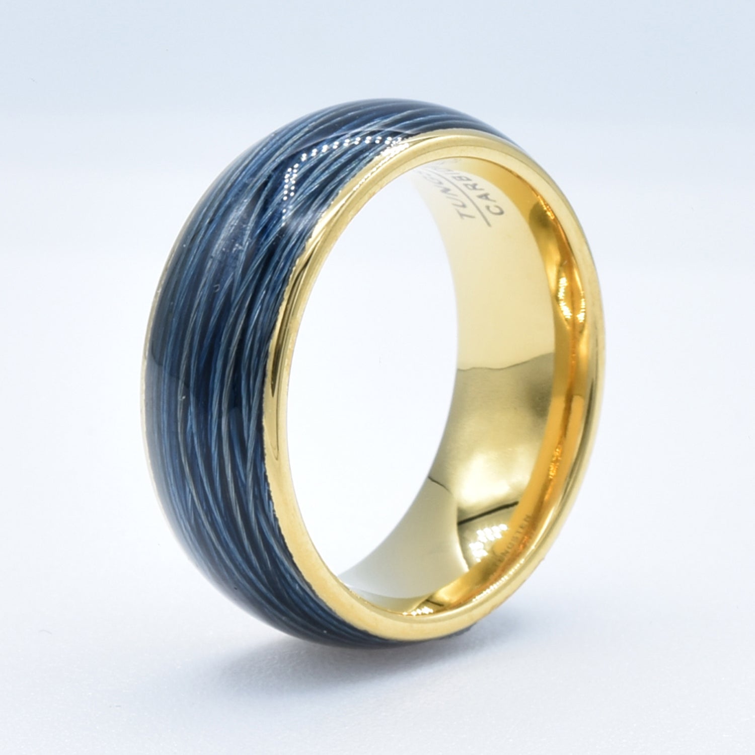 Blue Wire Design Yellow Wedding Band in Tungsten