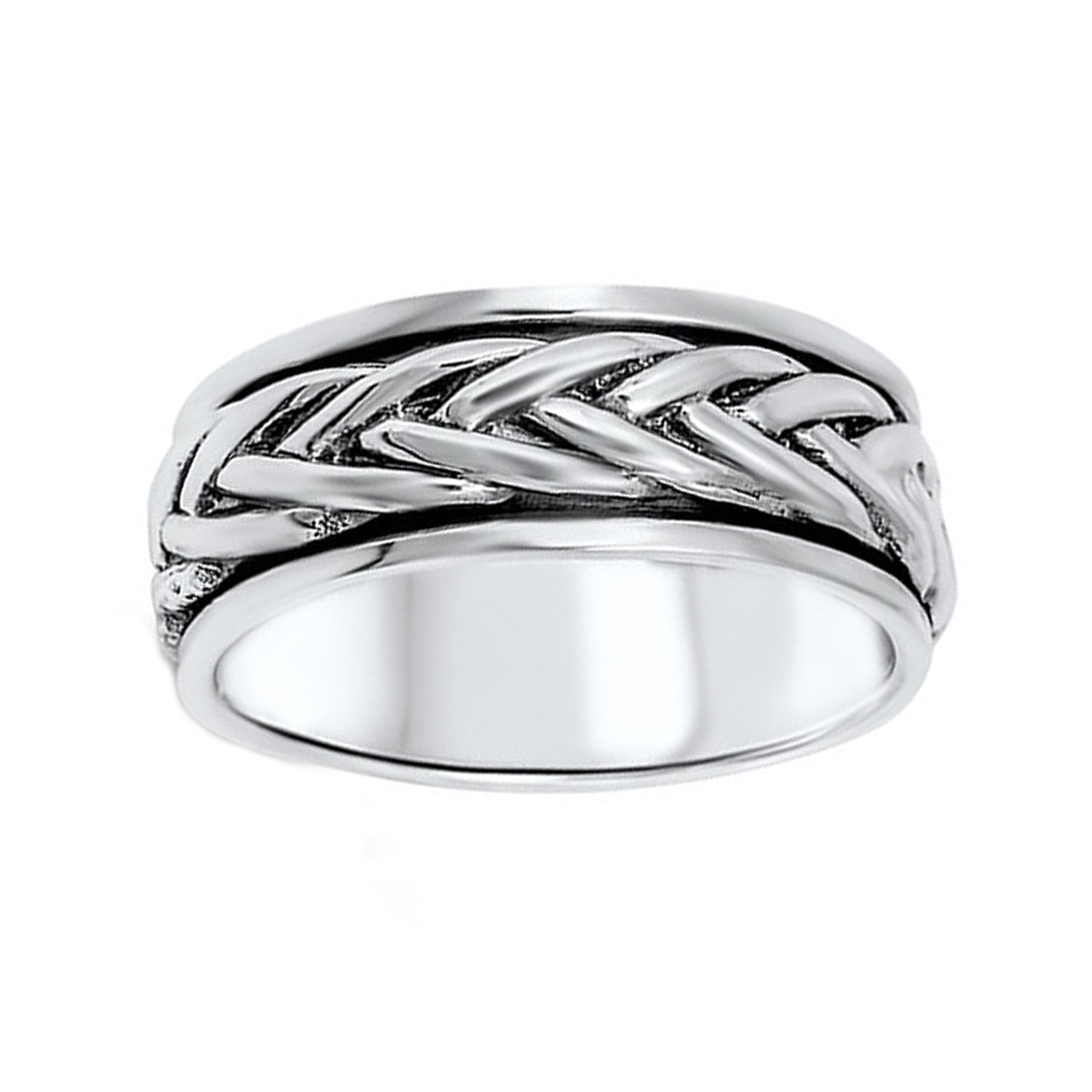 Braid Spinner Wedding Ring for Men in Sterling Silver