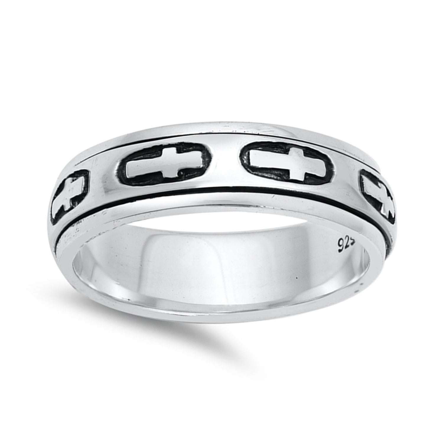 Sideway Cross Spinner Wedding Ring for Men in Sterling Silver