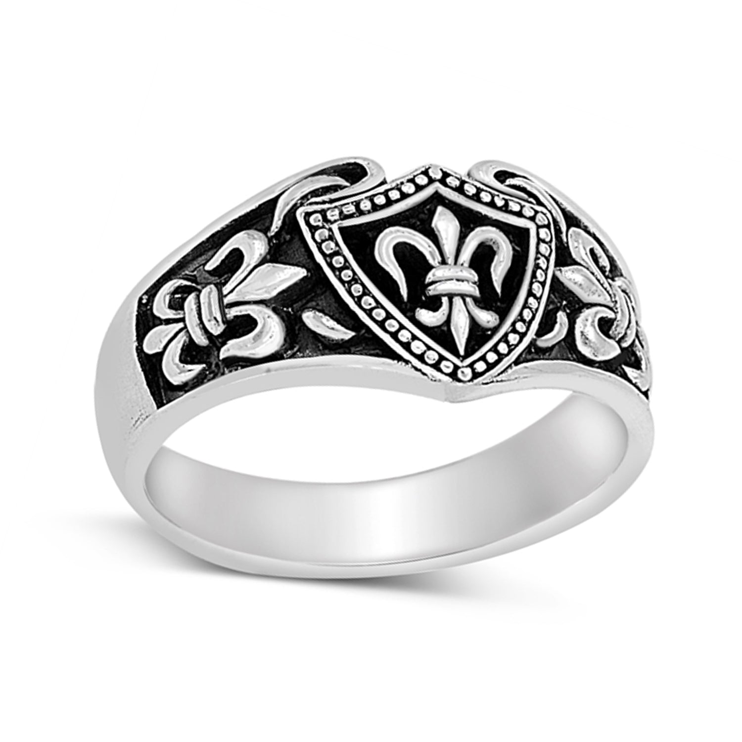 Fleur-de-lis Coat of Armor Ring for Men in Sterling Silver
