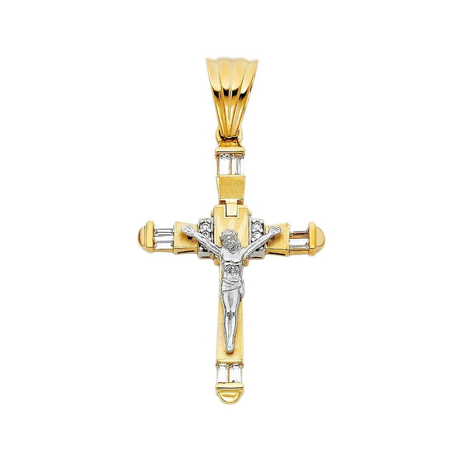 Jesus Crucifix Cubic Zirconia Pendant in 14k Two Tone Gold