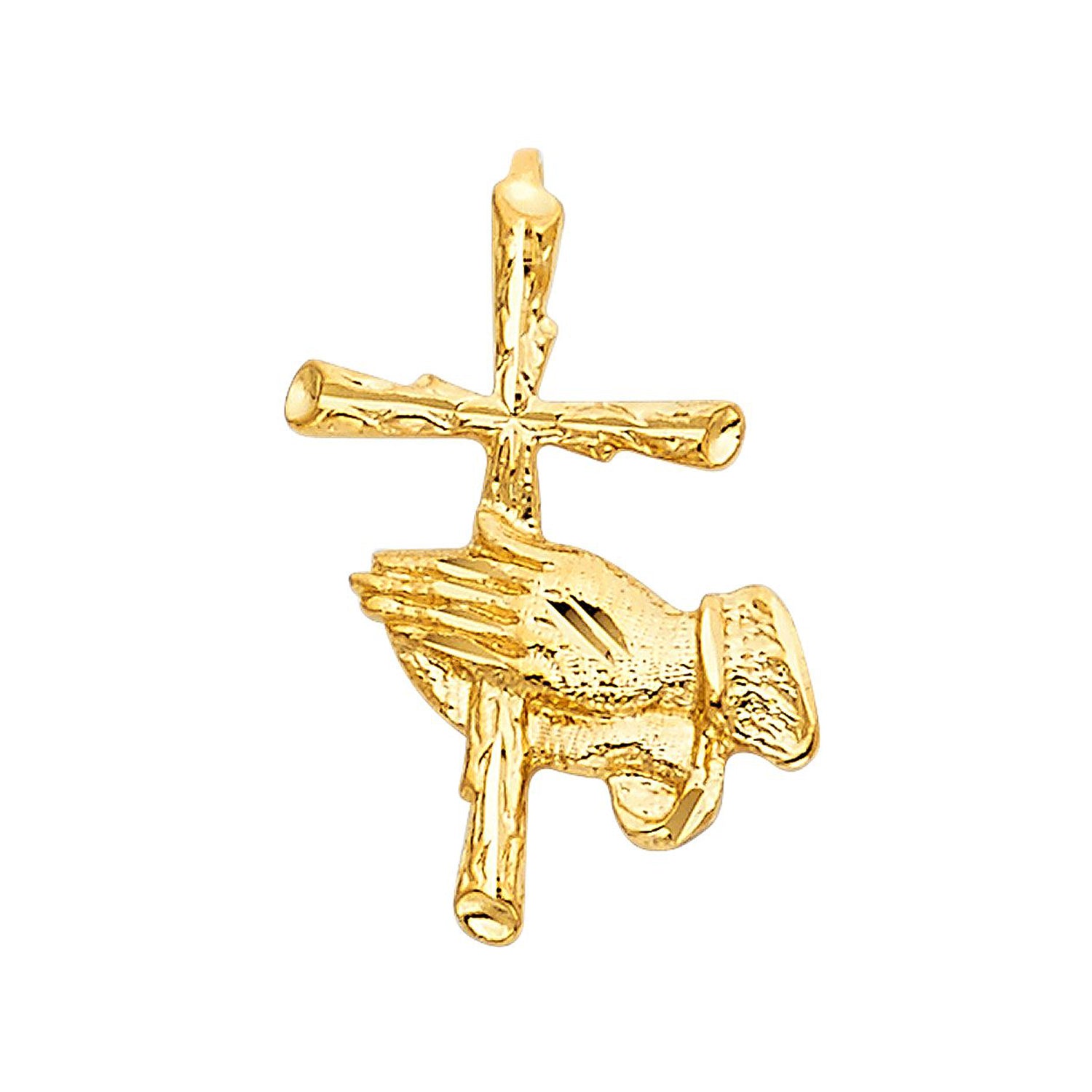 Praying Hands with Cross Pendant in 14k Yellow Gold