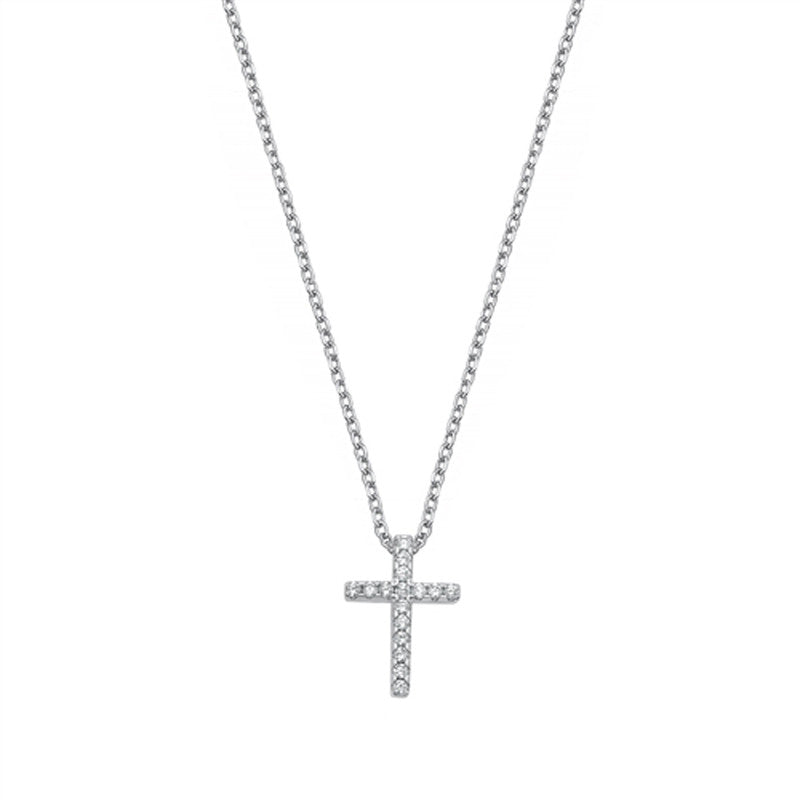 Cross Cubic Zirconia Pendant Necklace in Sterling Silver
