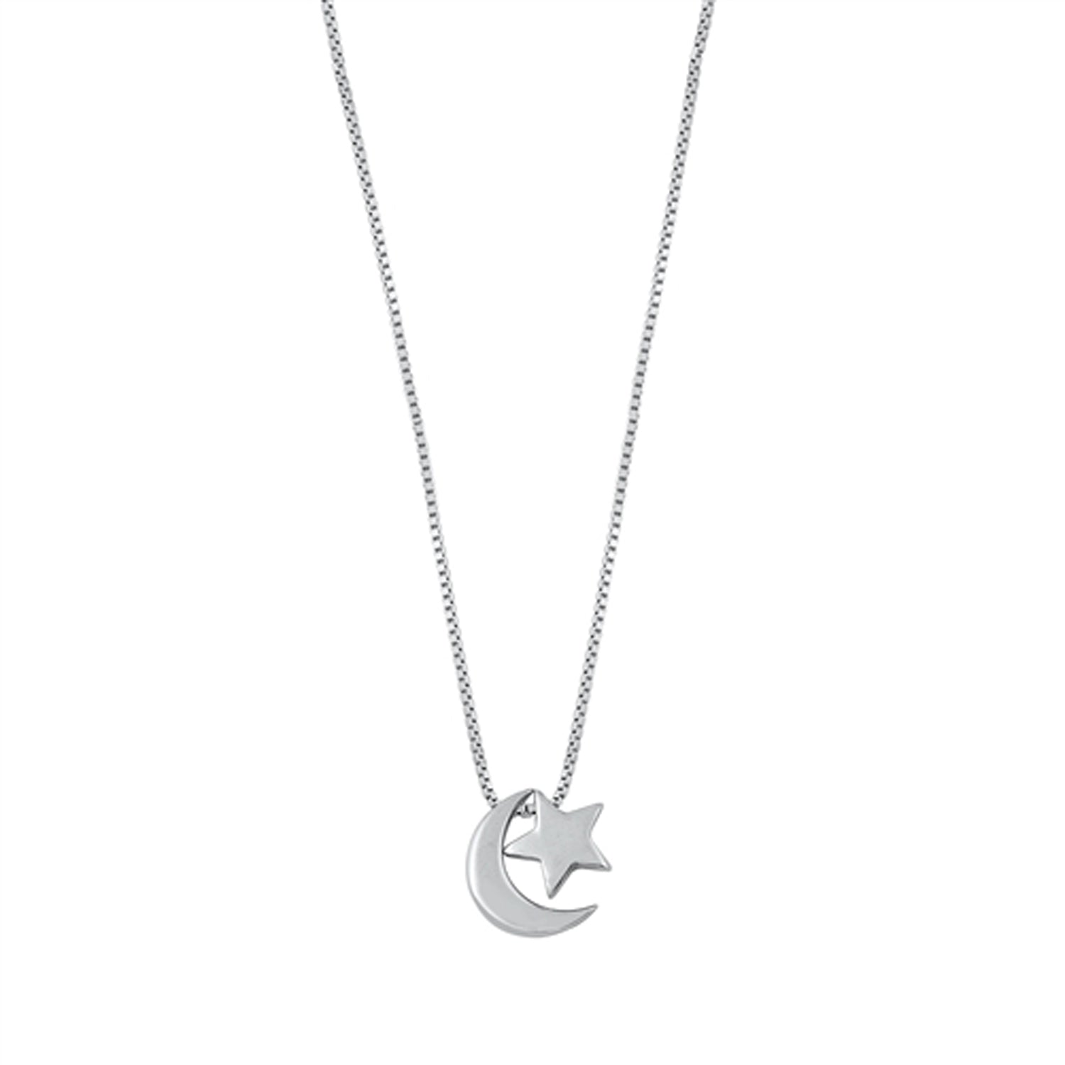 Goodnight Moon & Star Charm Pendant Necklace in Sterling Silver