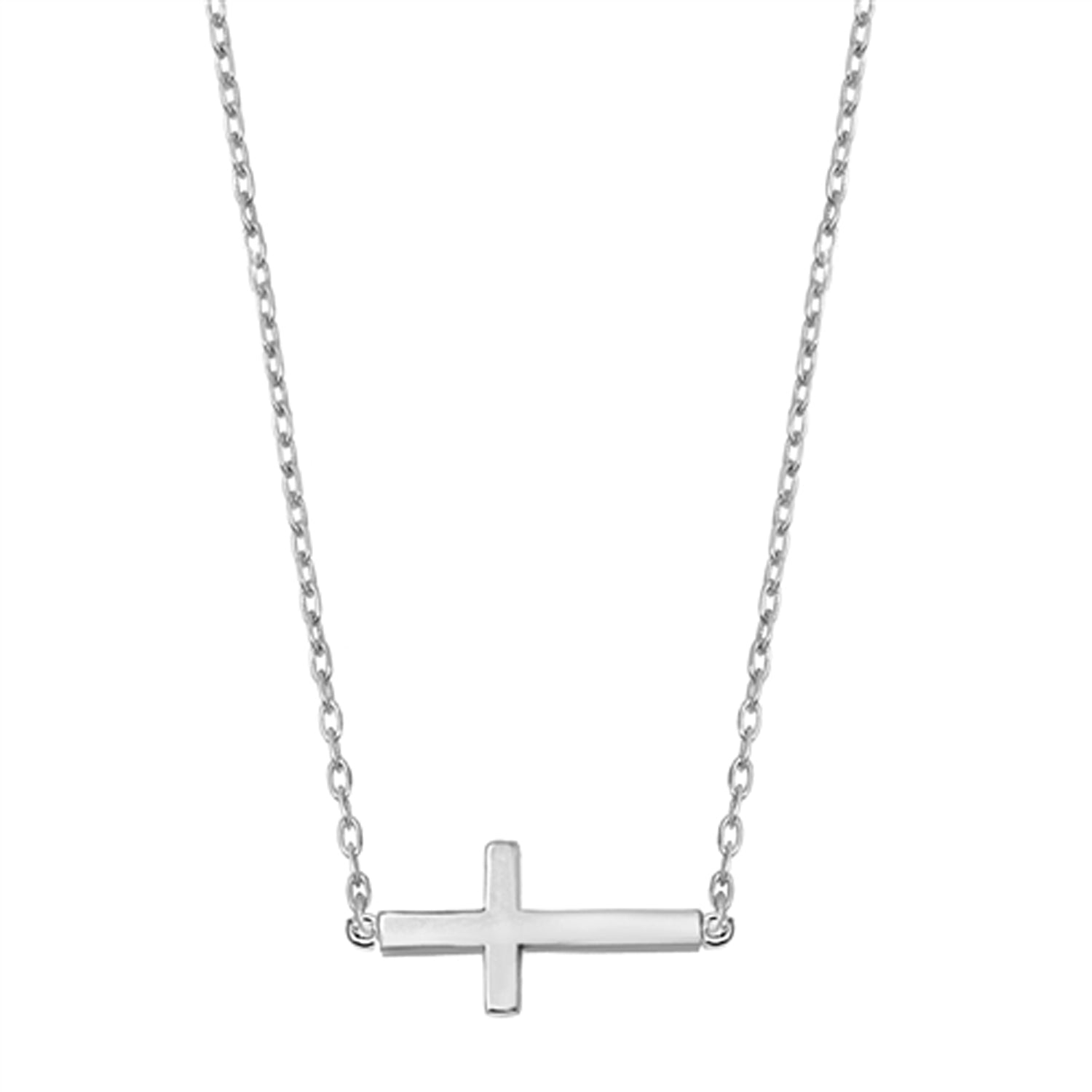 Classic Sideway Cross Pendant Necklace in Sterling Silver