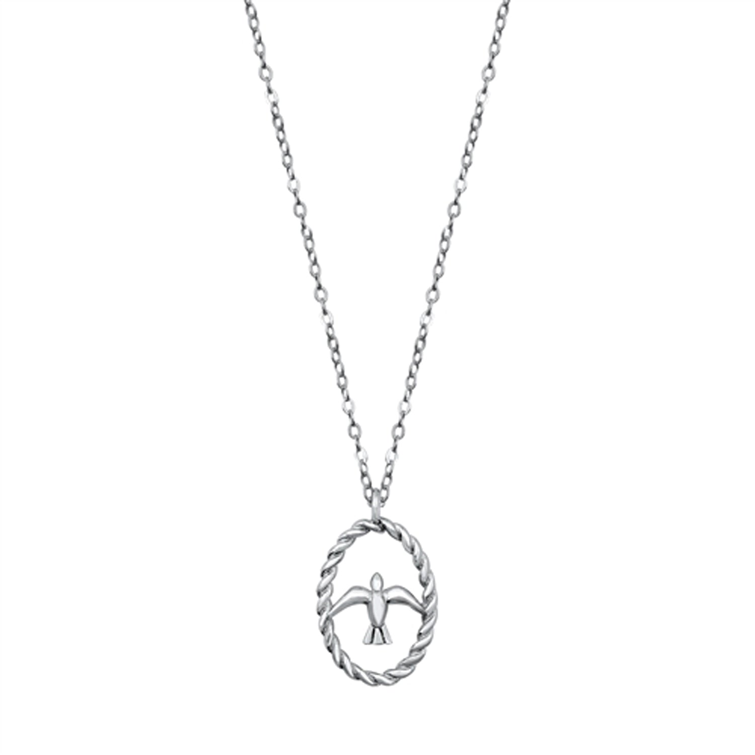 Holy Spirit Dove Spiral Oval Pendant Necklace in Sterling Silver