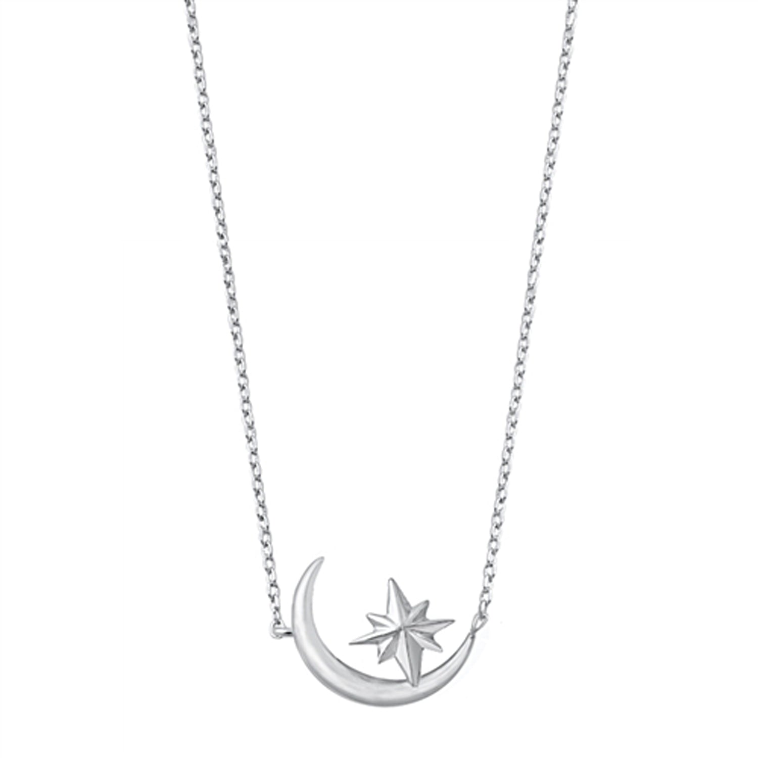 Bethlehem's Star with Moon Pendant Necklace in Sterling Silver