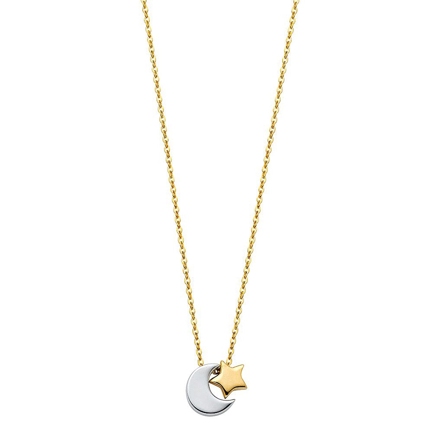 Goodnight Moon with Star Pendant Necklace in 14k Two Tone Gold