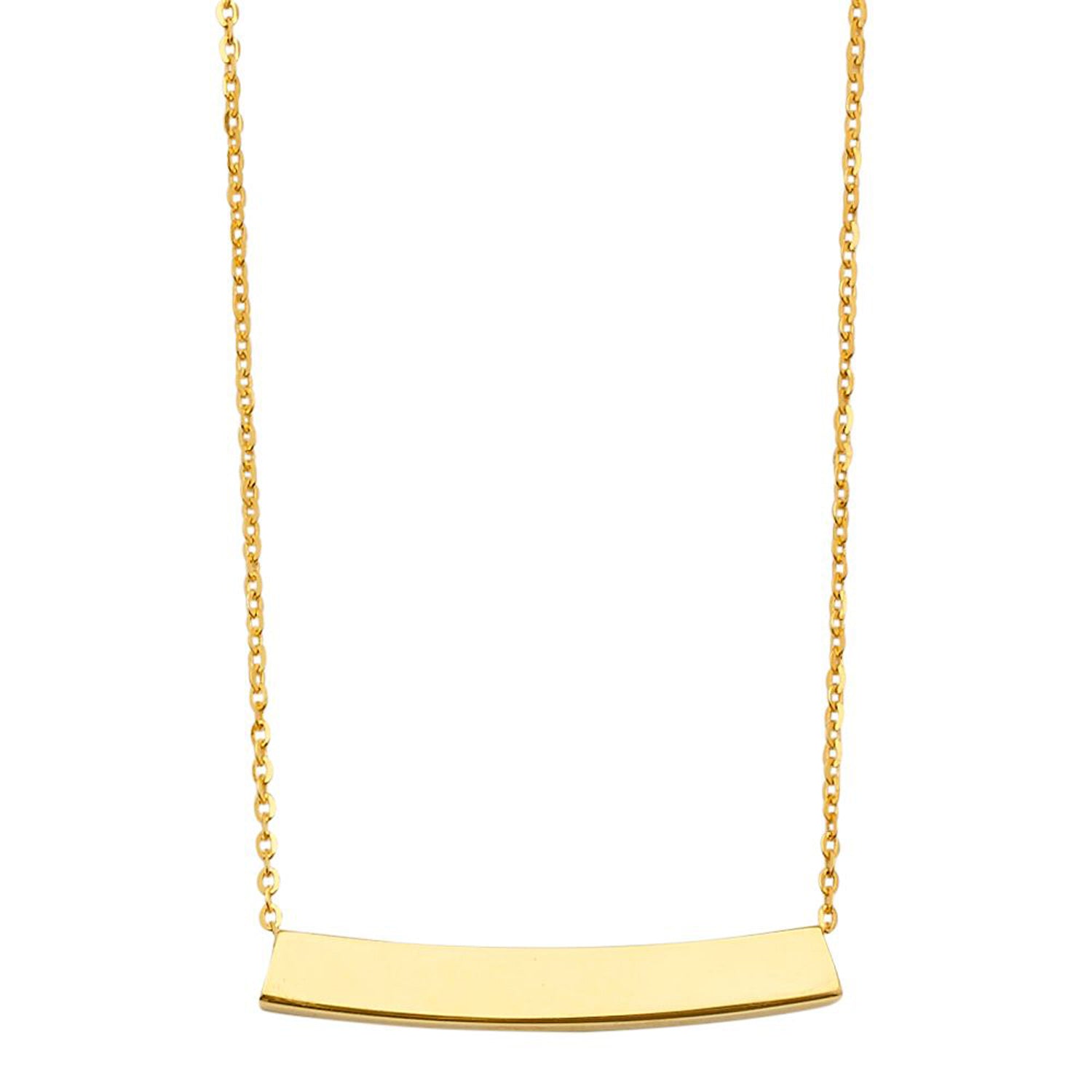 Curved Plain Bar Minimalist Pendant Necklace in 14k Yellow Gold