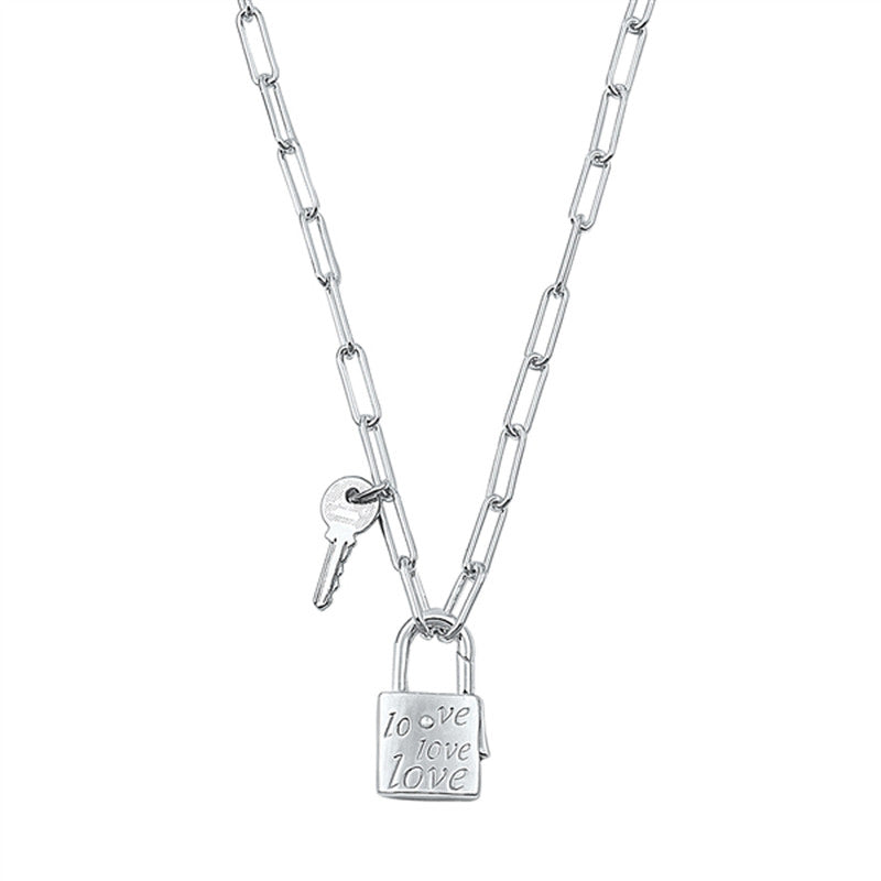 Love Padlock with Key Pendant Necklace in Sterling Silver