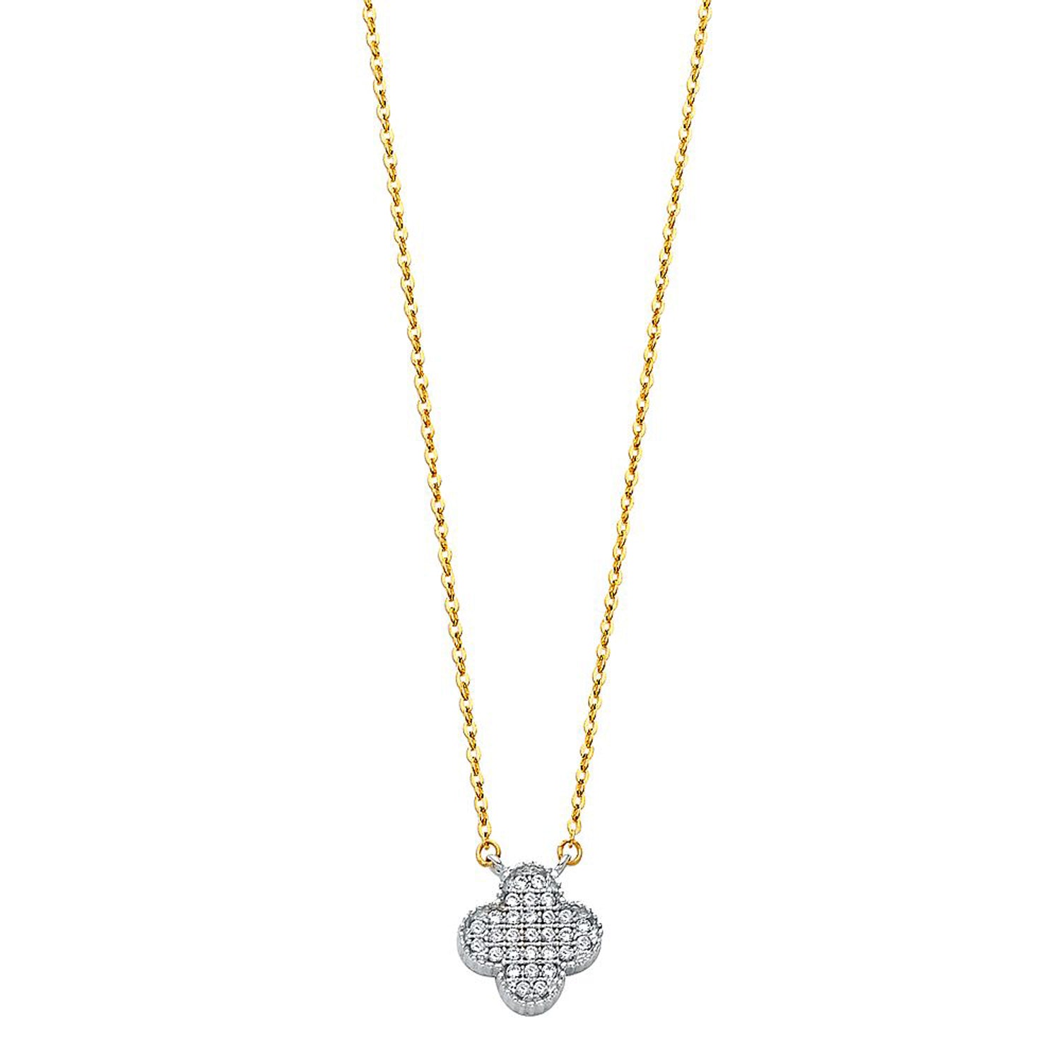Micropave Cubic Zirconia Flower Pendant Necklace in 14k Two Tone Gold