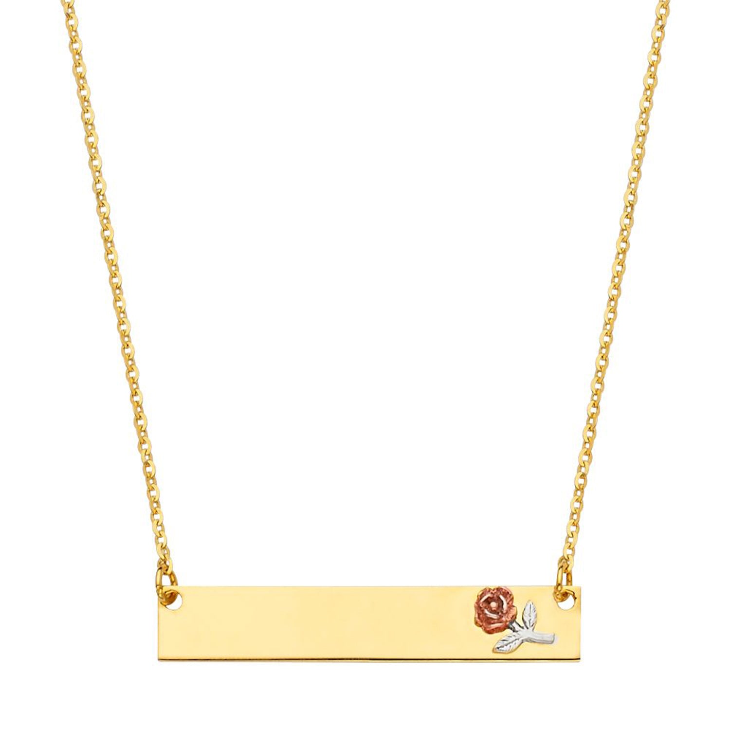 ID Bar Pendant with Rose Accent Necklace in 14k Yellow Gold