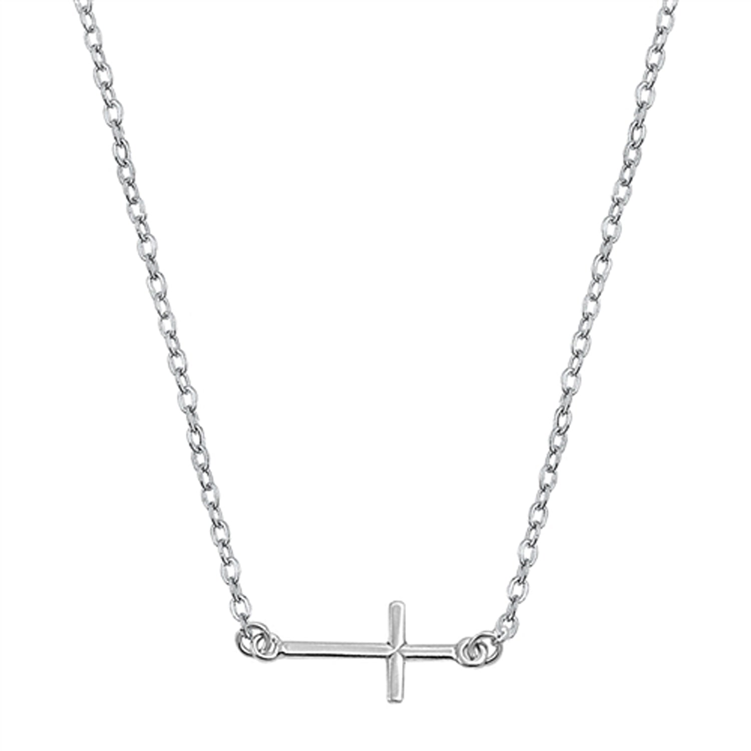 Slender Sideway Cross Pendant Necklace in Sterling Silver