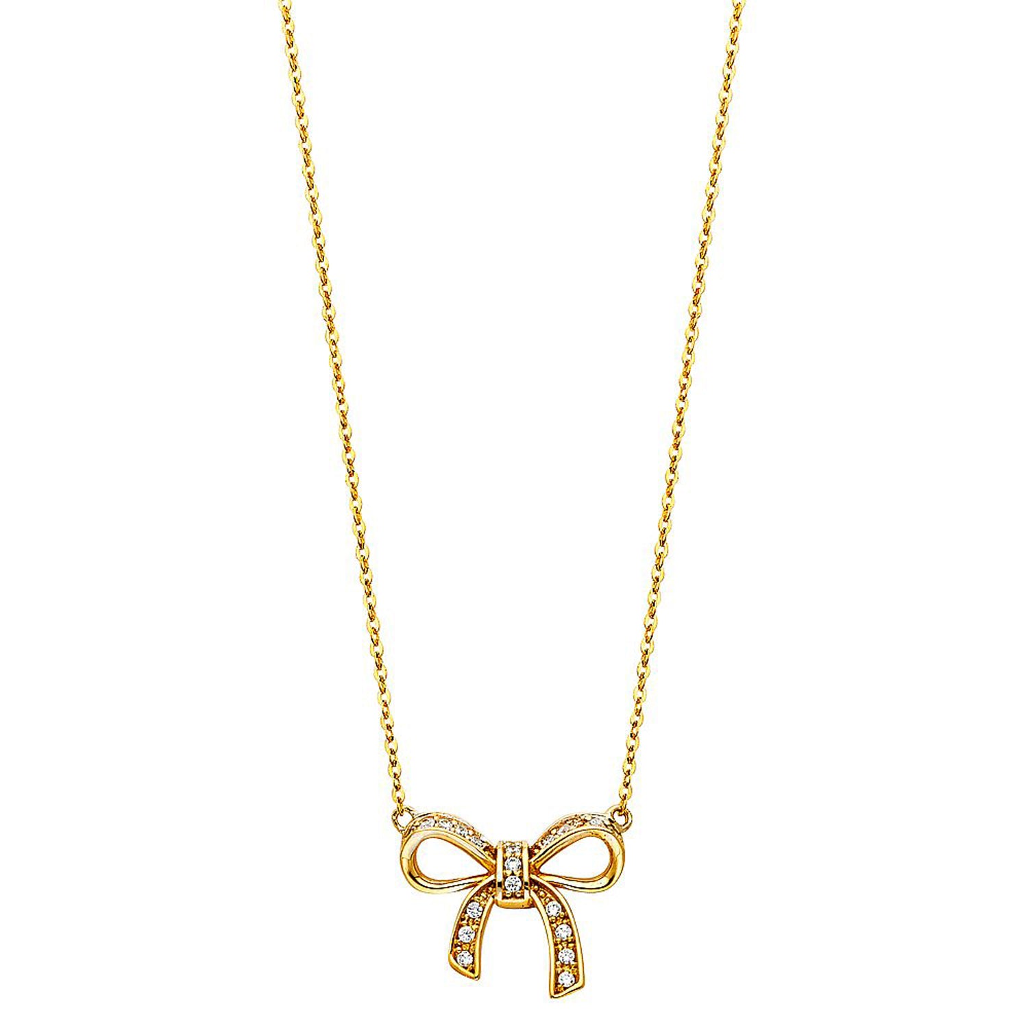Sweet Bow Cubic Zirconia Accent Pendant Necklace in 14k Yellow Gold