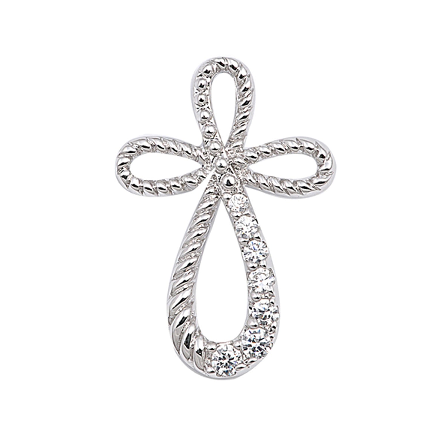 Braided Loop Cross Cubic Zirconia Pendant in Sterling Silver
