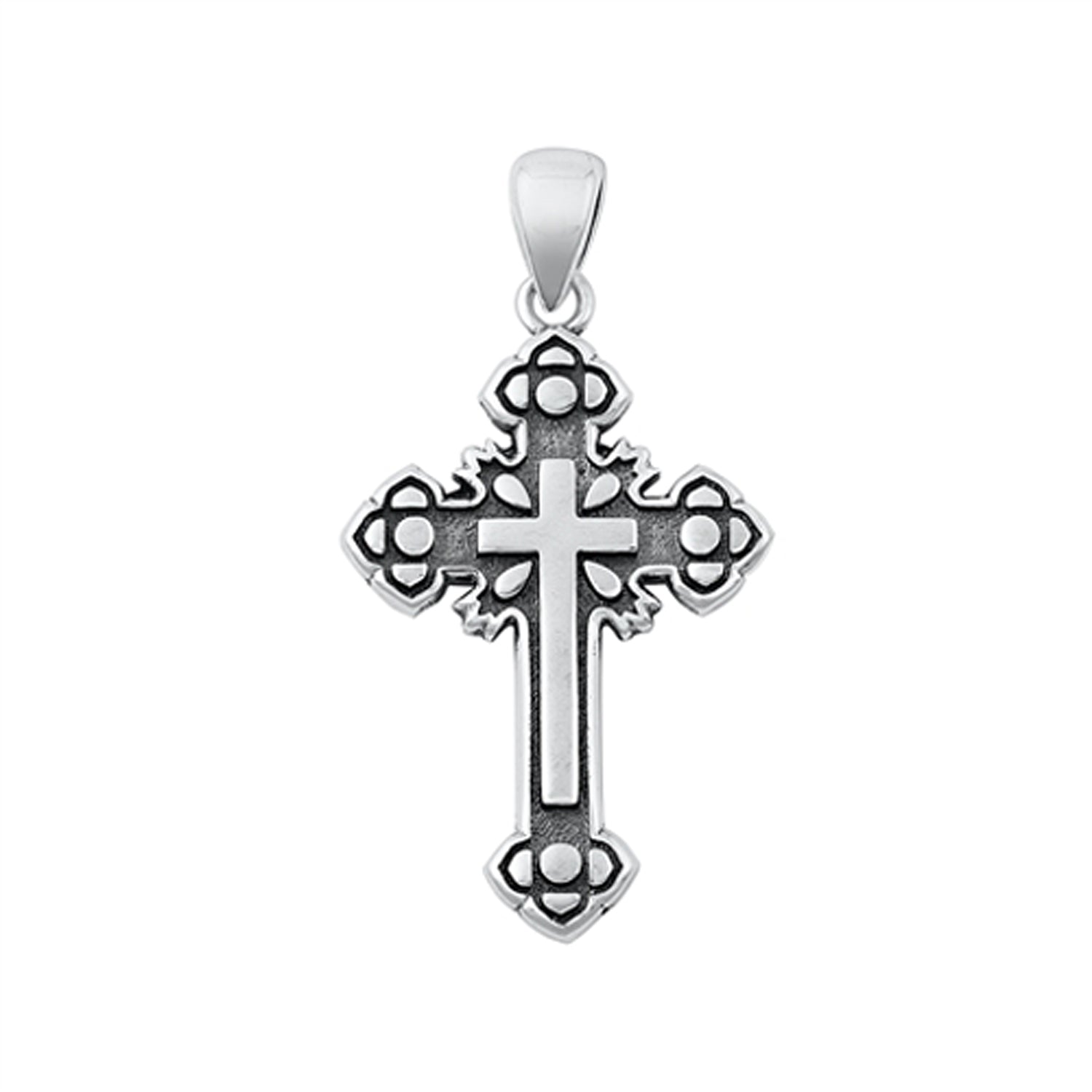 Black Center Antique Finish Cross Pendant in Sterling Silver