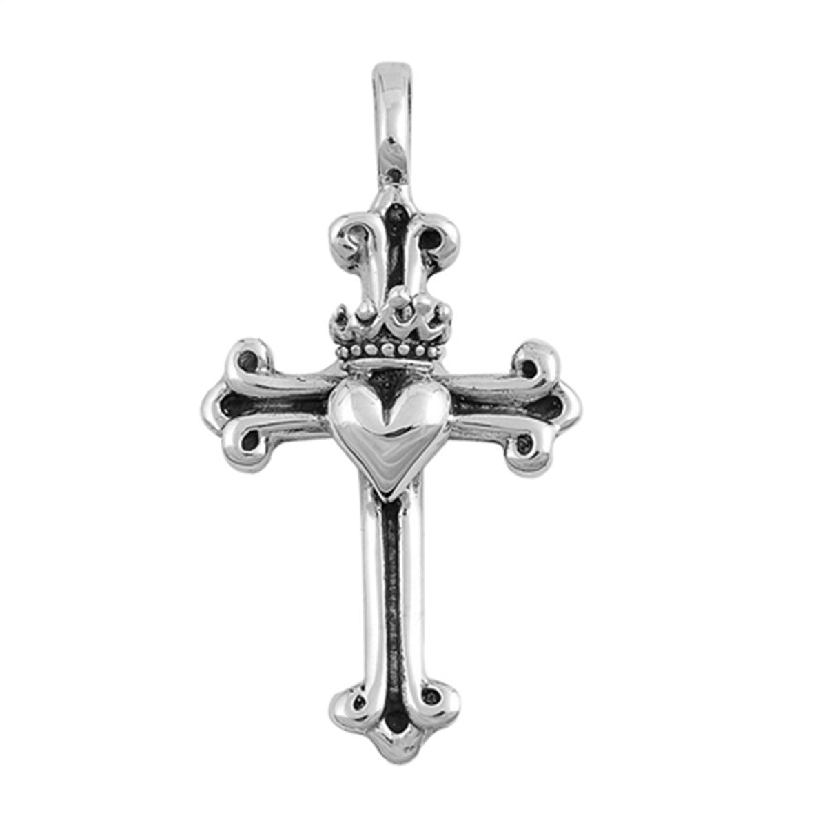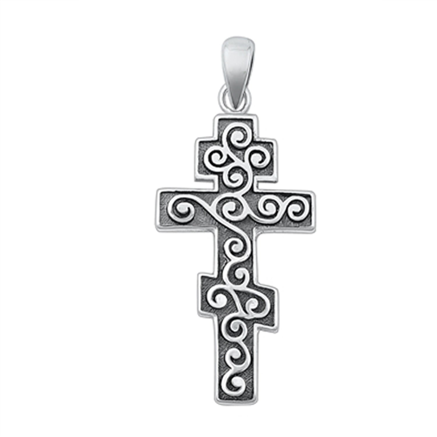 Caravaca Cross Scroll Pendant in Sterling Silver