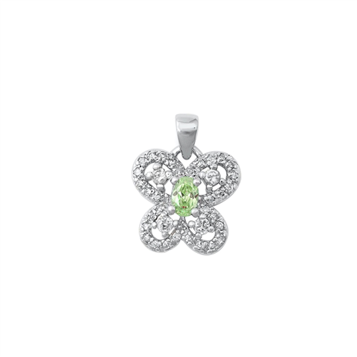 Butterfly with Green Cubic Zirconia Center Stone Pendant in Sterling Silver
