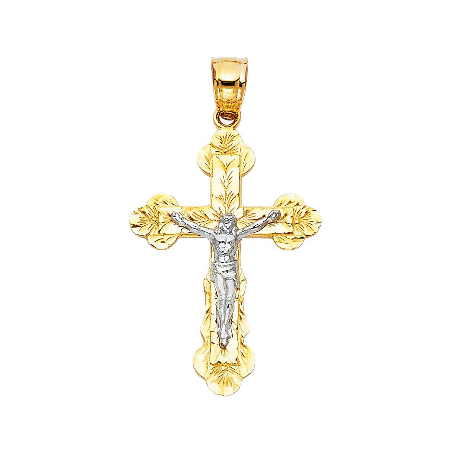 Budded Crucifix Cross Pendant 14k Two Tone Gold