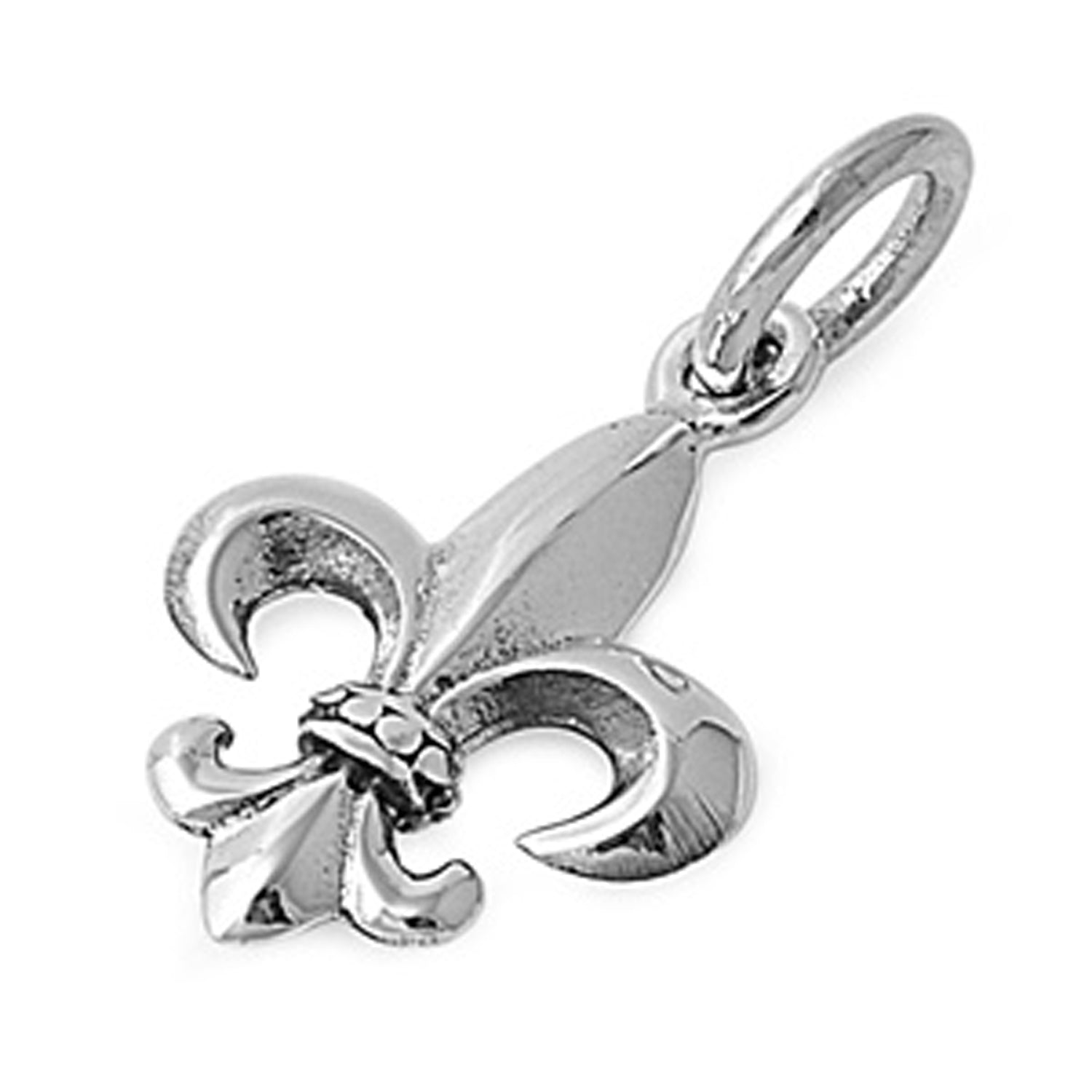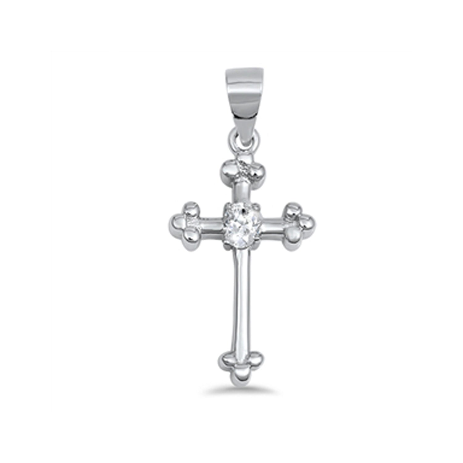 Slender Fleur-de-lis Cubic Zirconia Cross Pendant in Sterling Silver